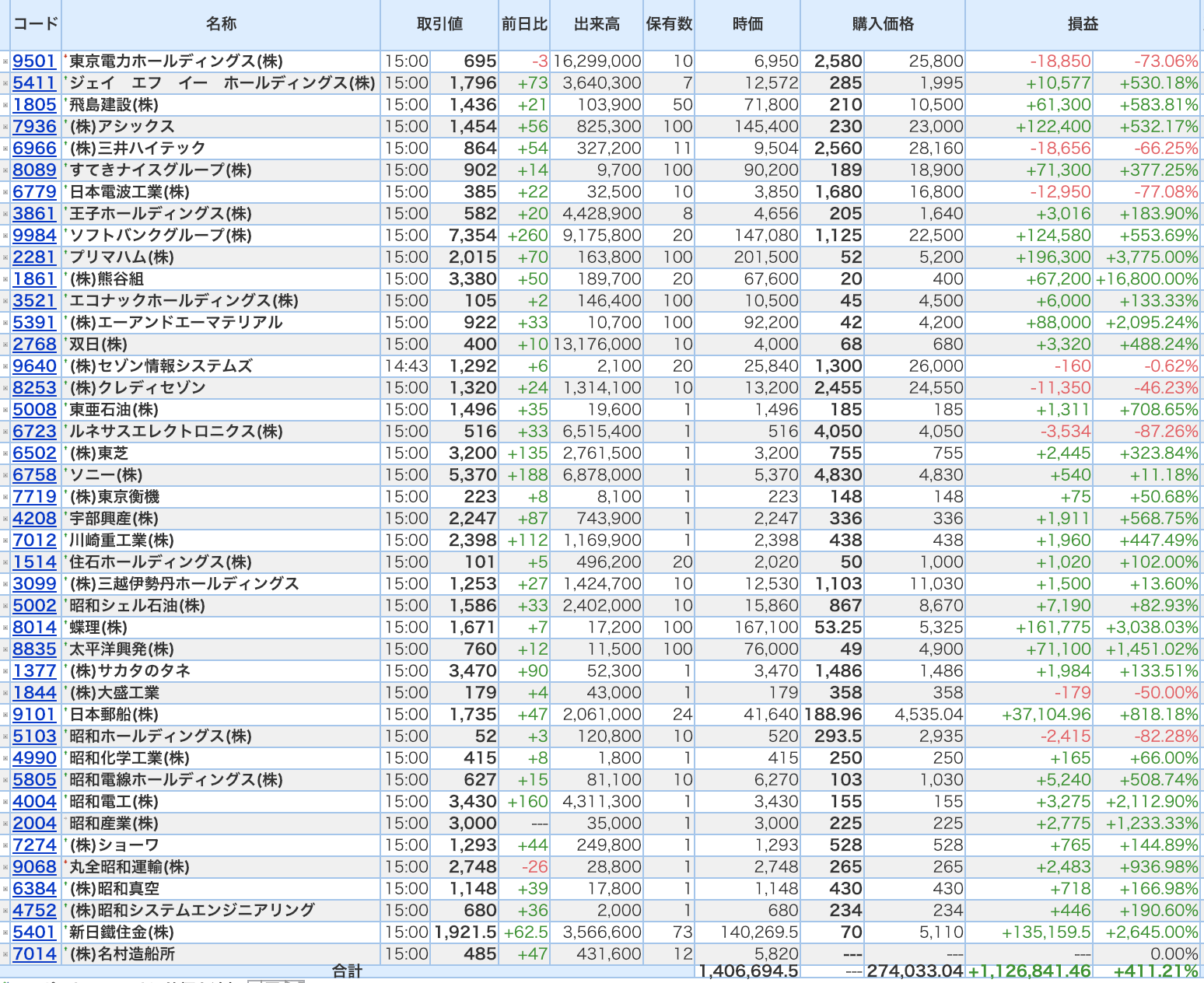 豊嶋康子ミニ投資【合計】___¥1,406,694.5(+411.21%)