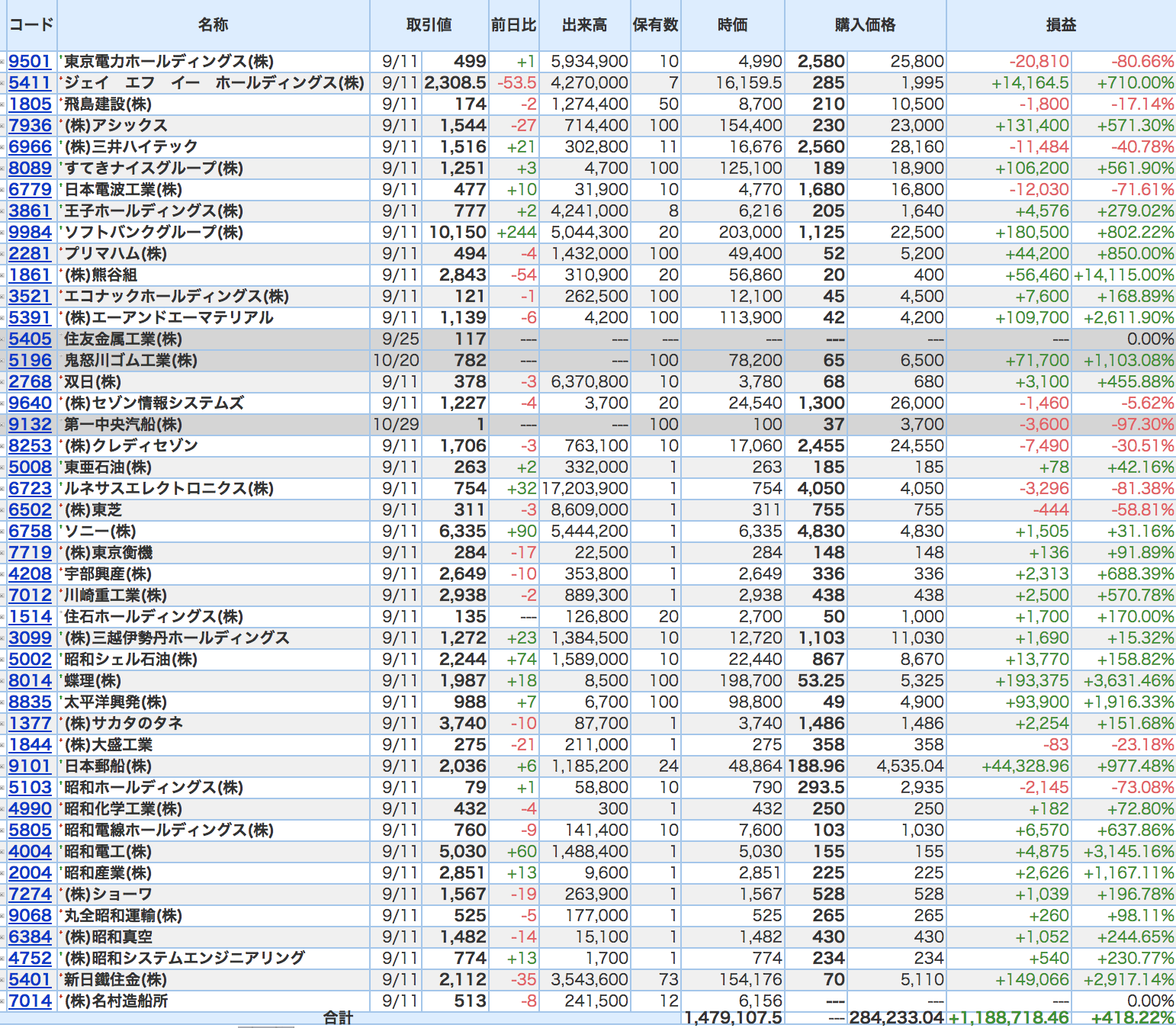 豊嶋康子ミニ投資【合計】___¥1,479,107.5(+418.22%)