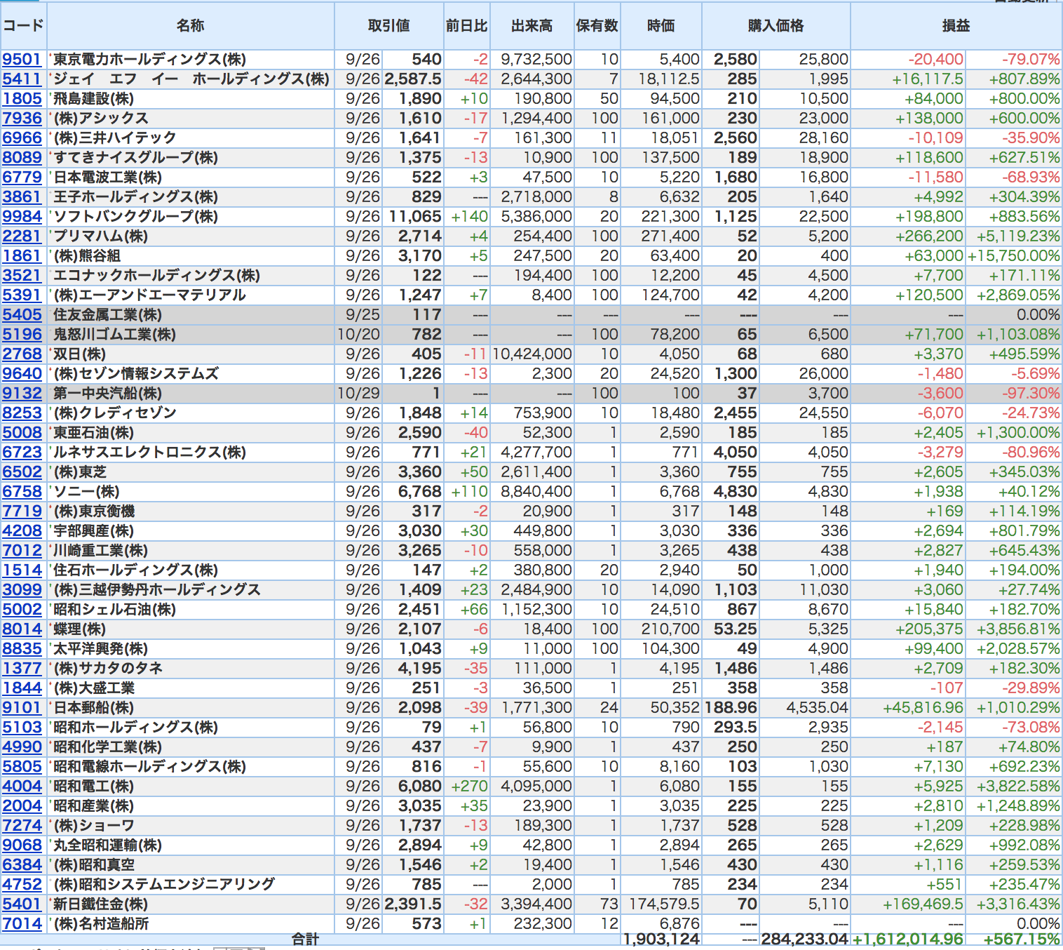 豊嶋康子ミニ投資【合計】___¥1,903,124(+567.15%)