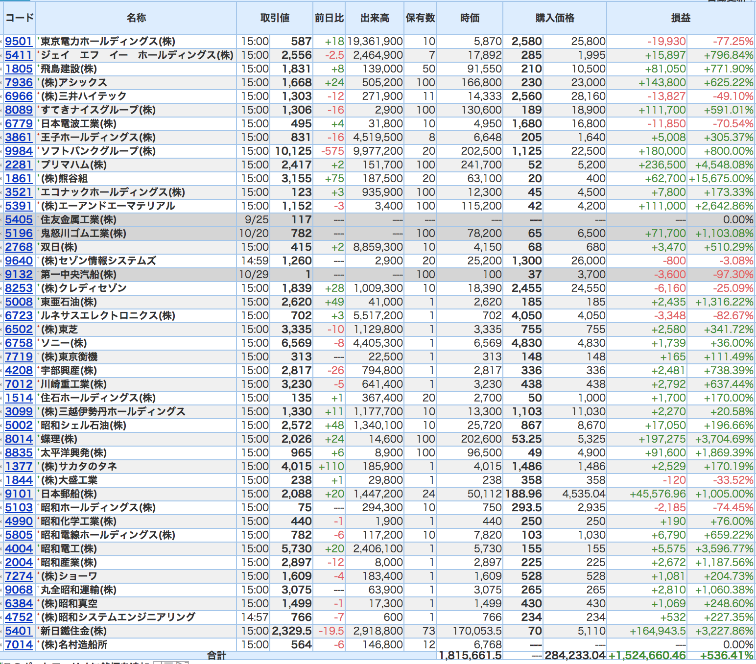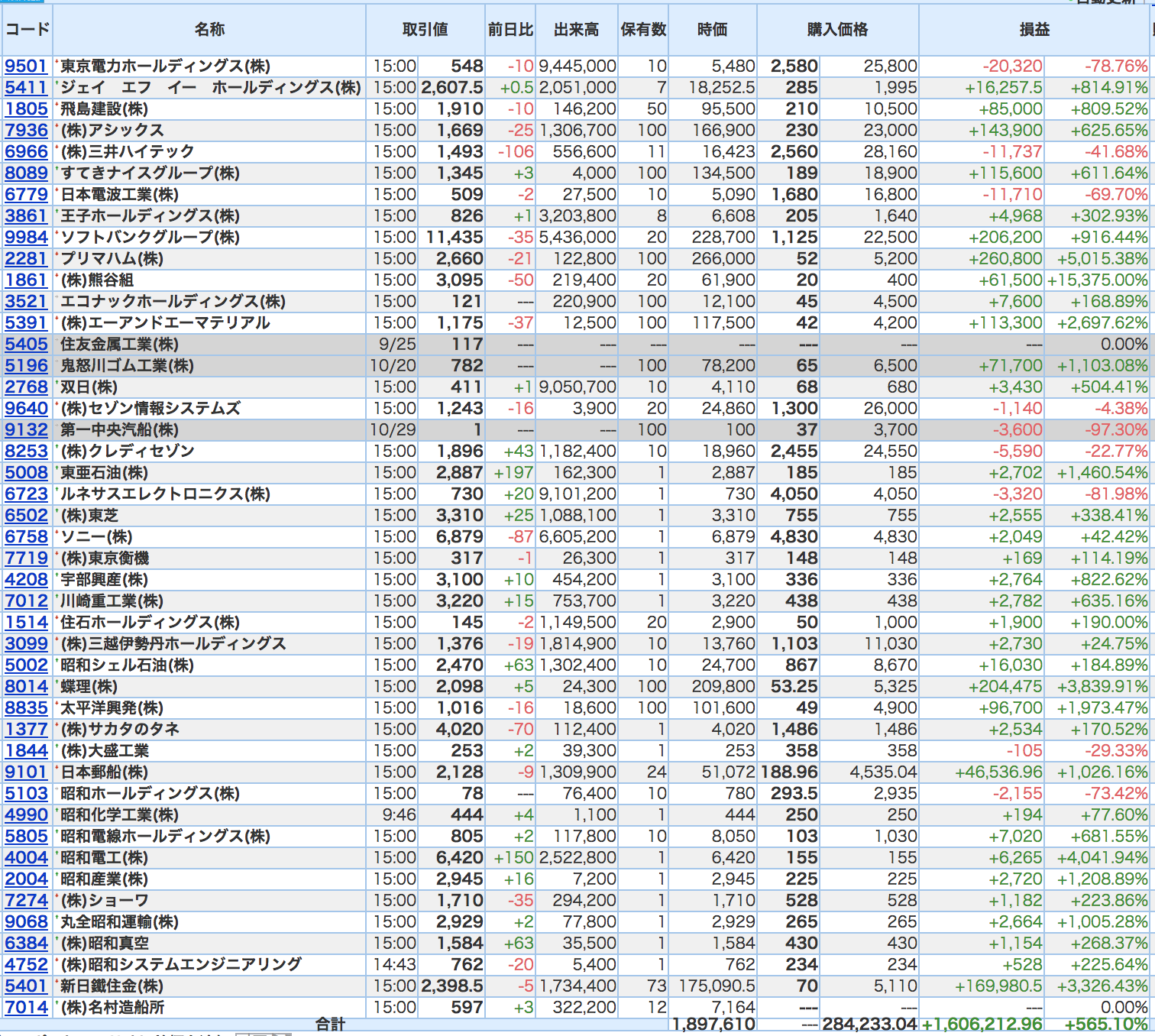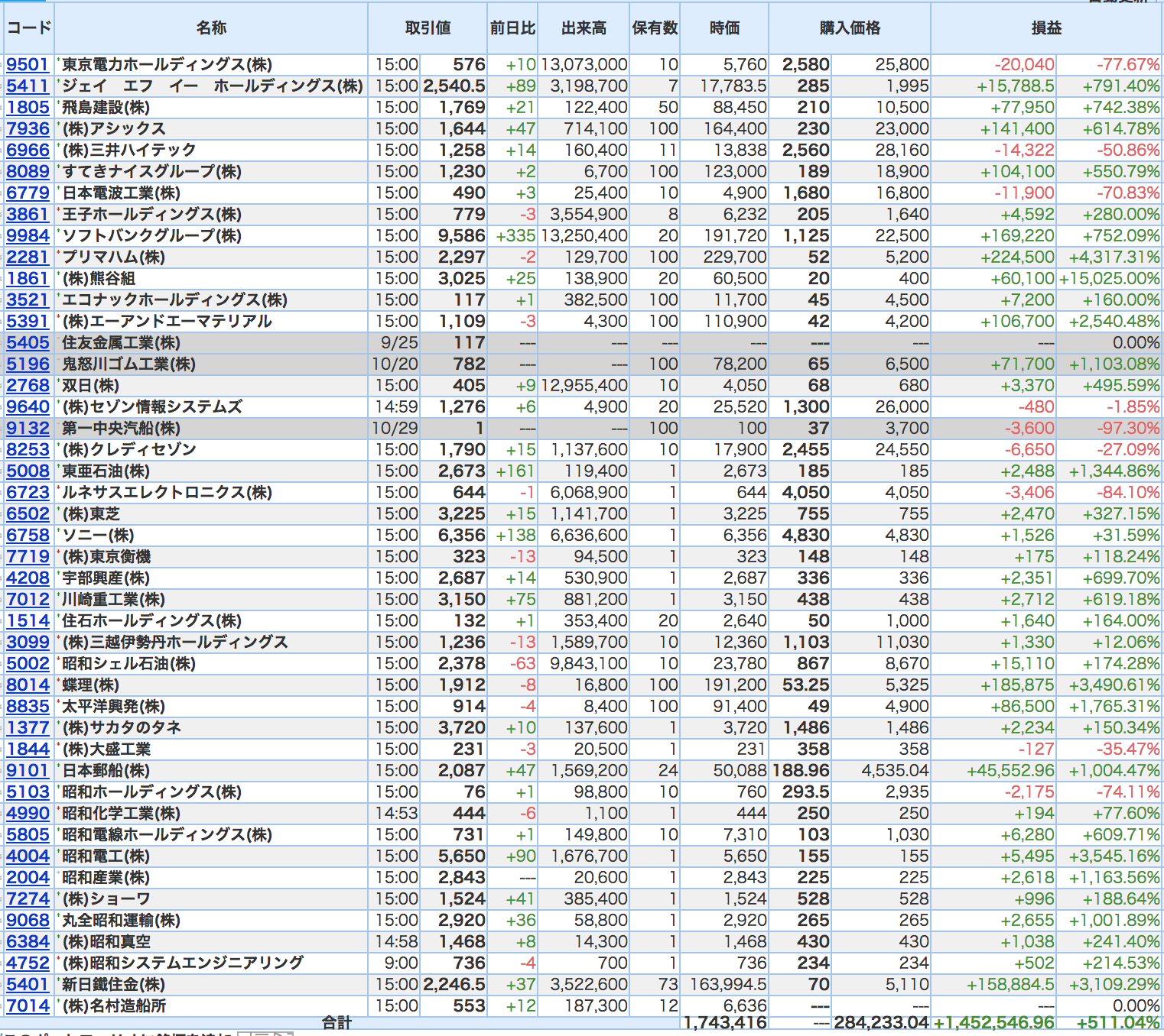 豊嶋康子ミニ投資【合計】___¥1,575,539(+451.94%)