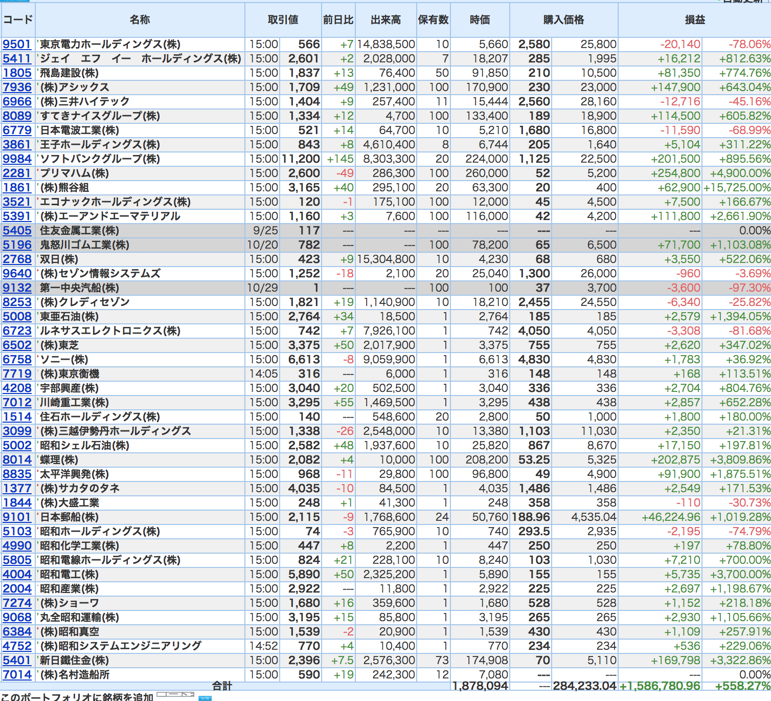 豊嶋康子ミニ投資【合計】___¥1,594,774(+458.66%)
