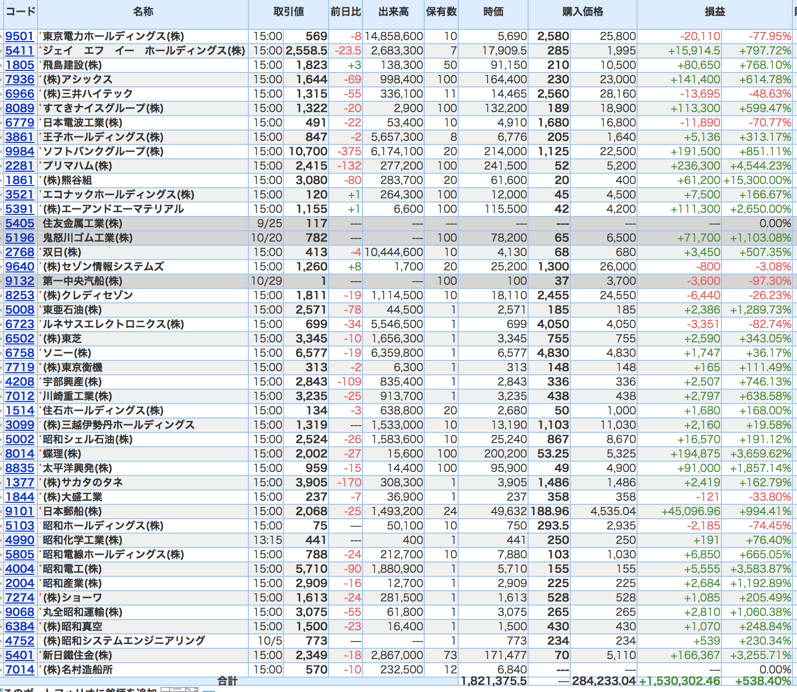豊嶋康子ミニ投資【合計】___¥1,821,375.5(+538.40%)
