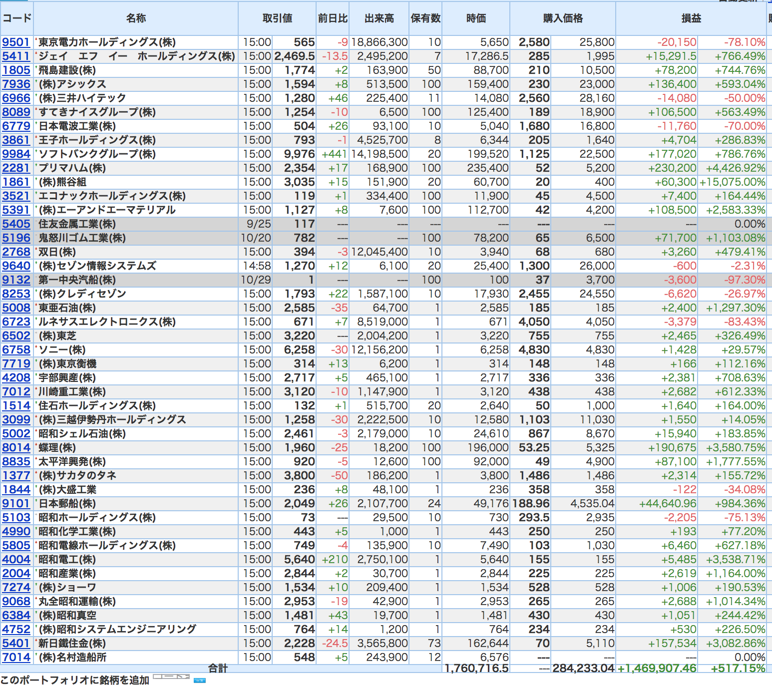 豊嶋康子ミニ投資【合計】___¥1,476,619 (+417.36%)