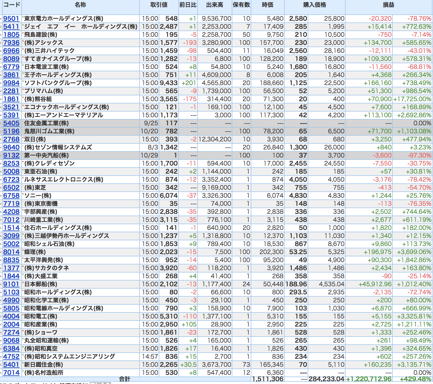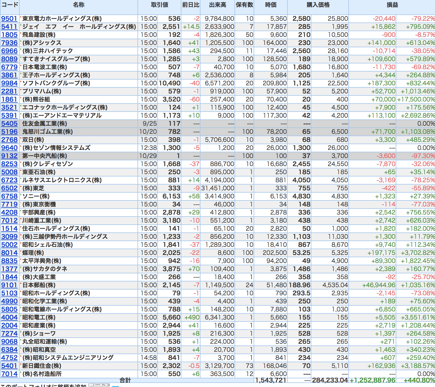 豊嶋康子ミニ投資【合計】___¥1,502,030.5(+426.37%)