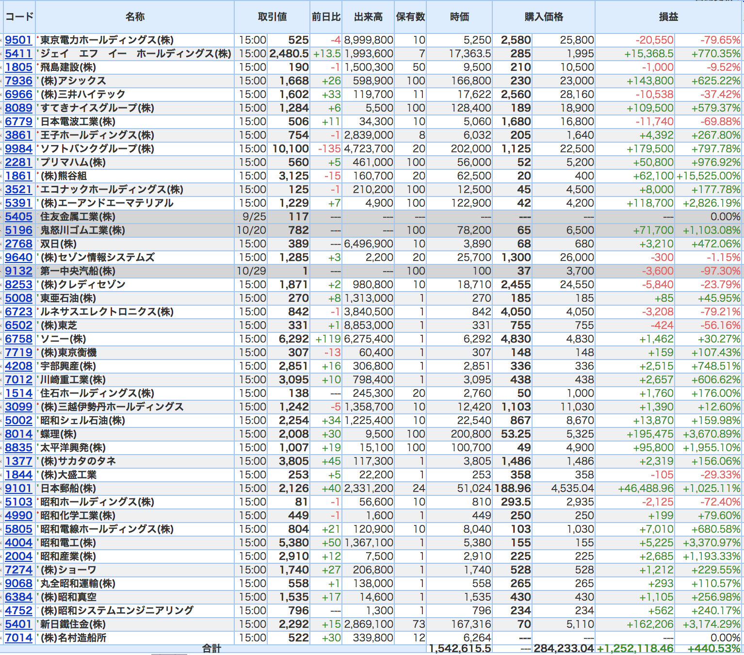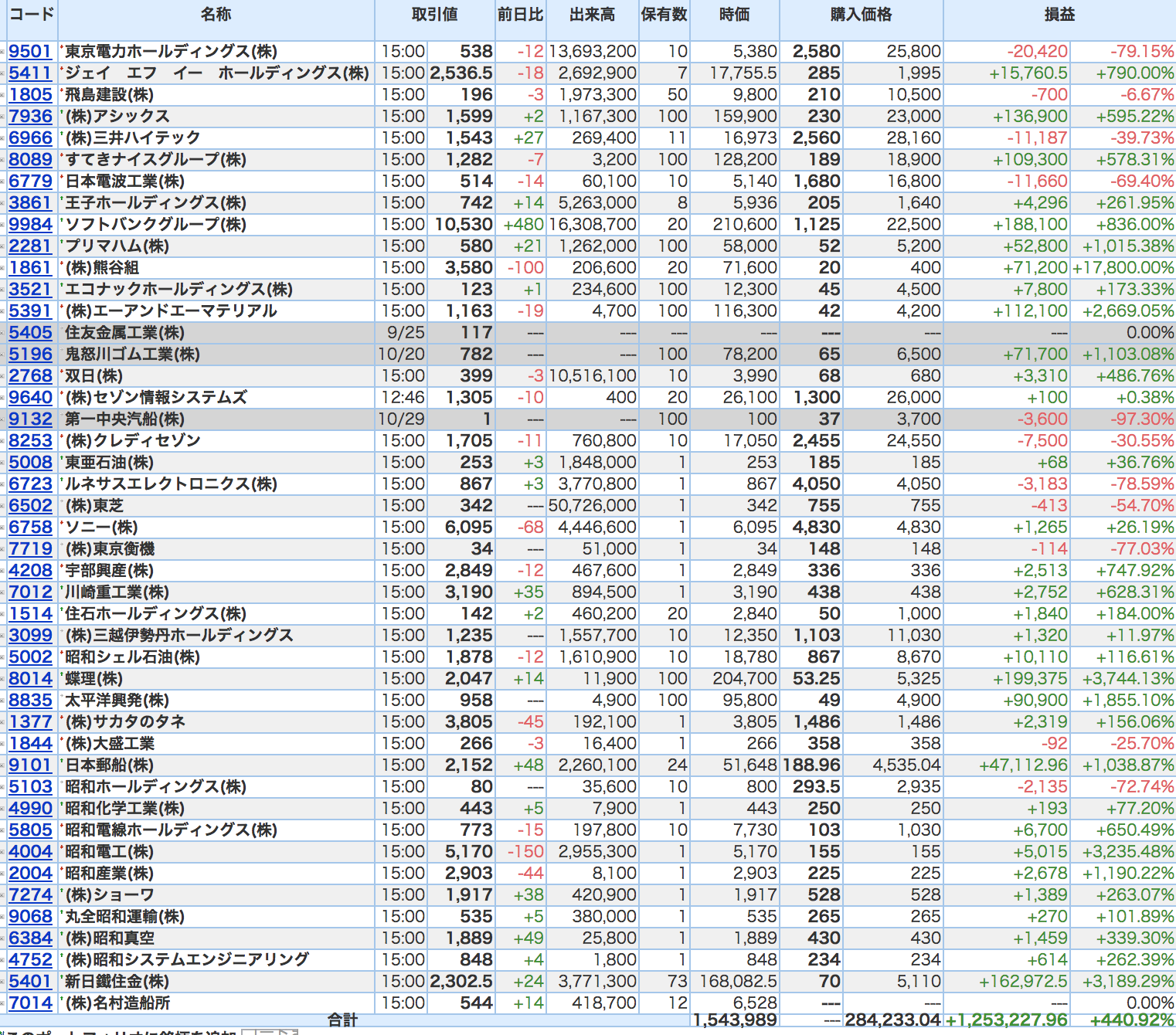 豊嶋康子ミニ投資【合計】___¥1,542,615.5 (+440.53%)