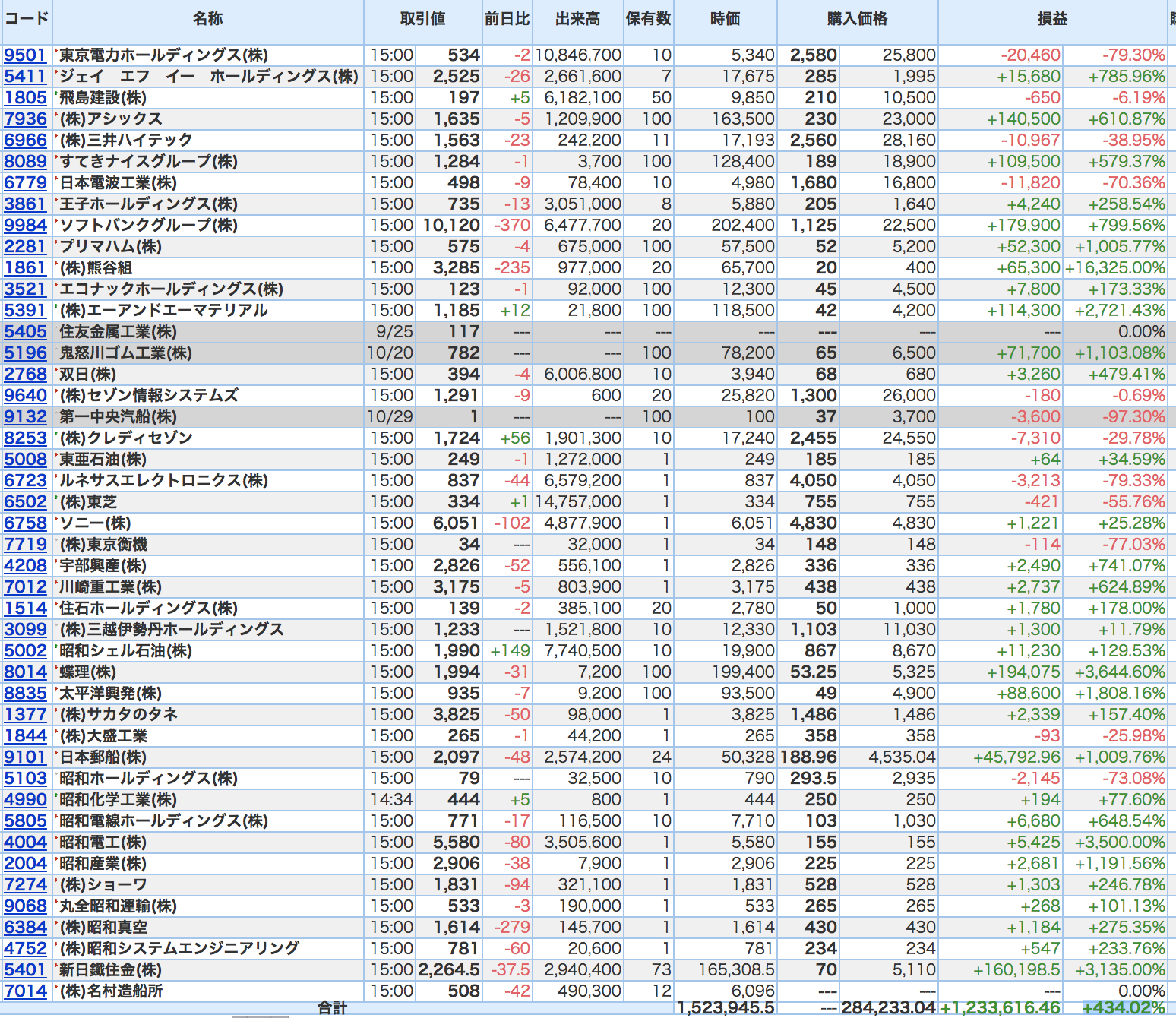 豊嶋康子ミニ投資【合計】___¥1,519,234(+432.36%)