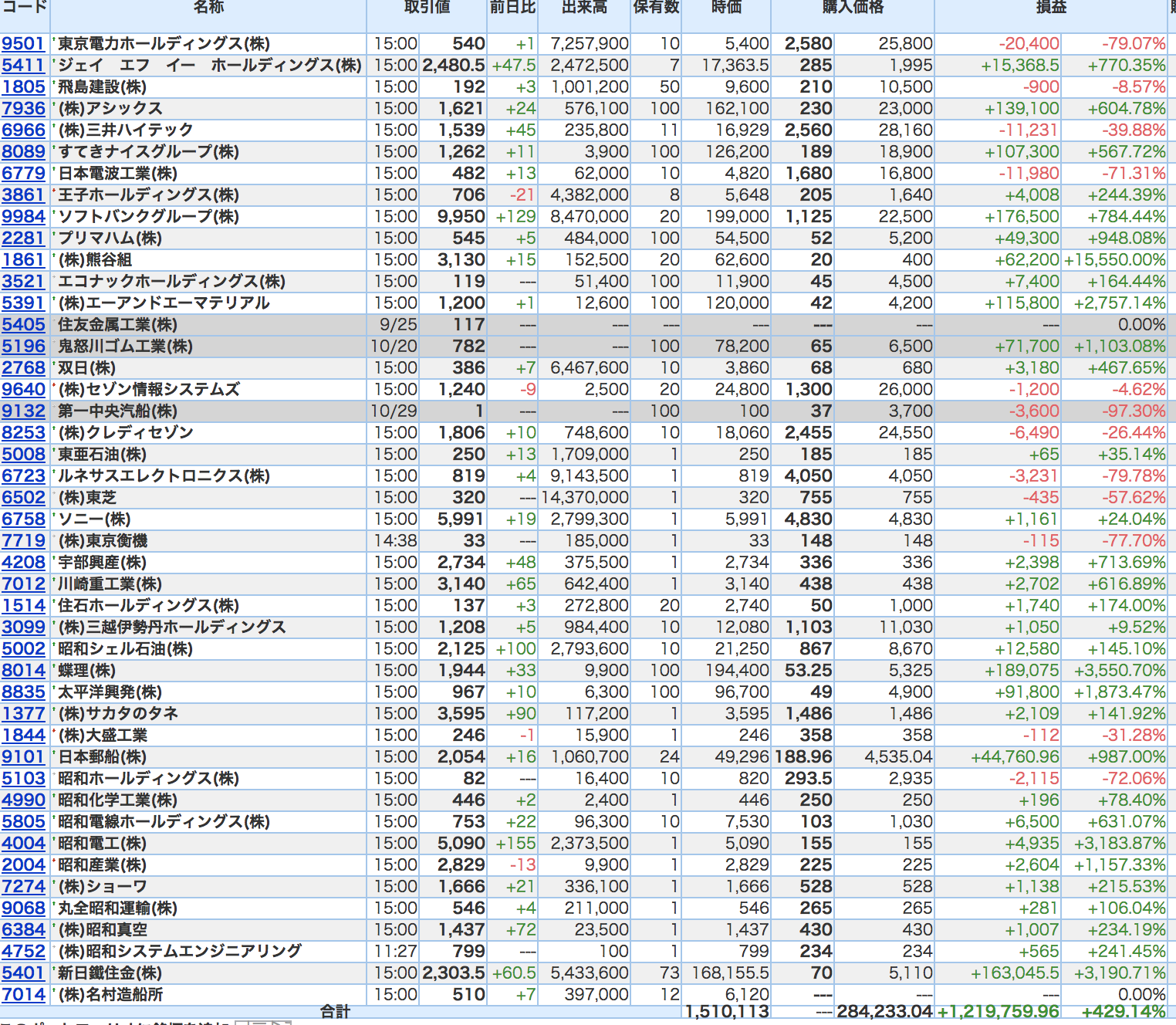 豊嶋康子ミニ投資【合計】___¥1,510,113(+429.14%)