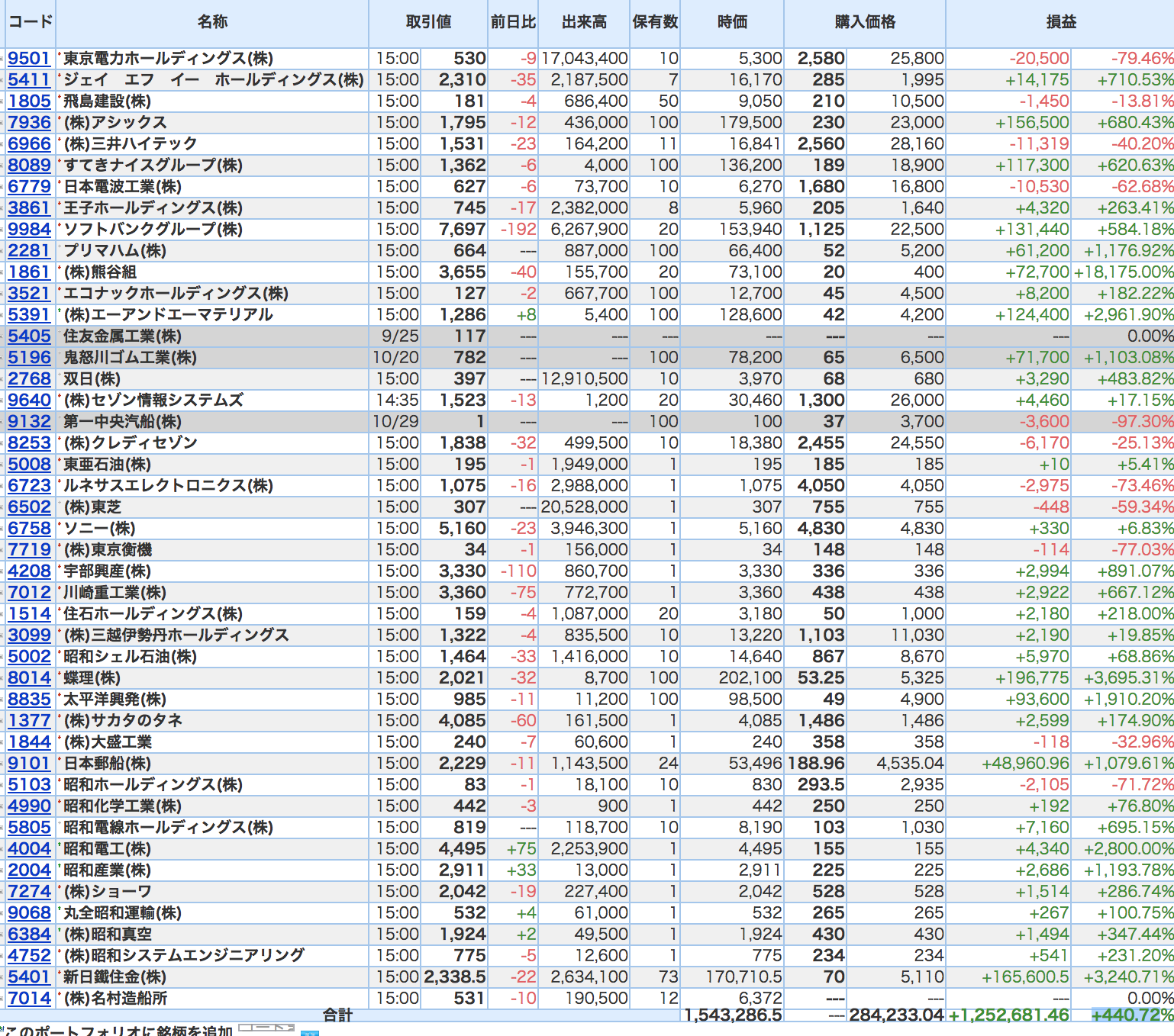 豊嶋康子ミニ投資【合計】___¥1,540,271(+439.83%)
