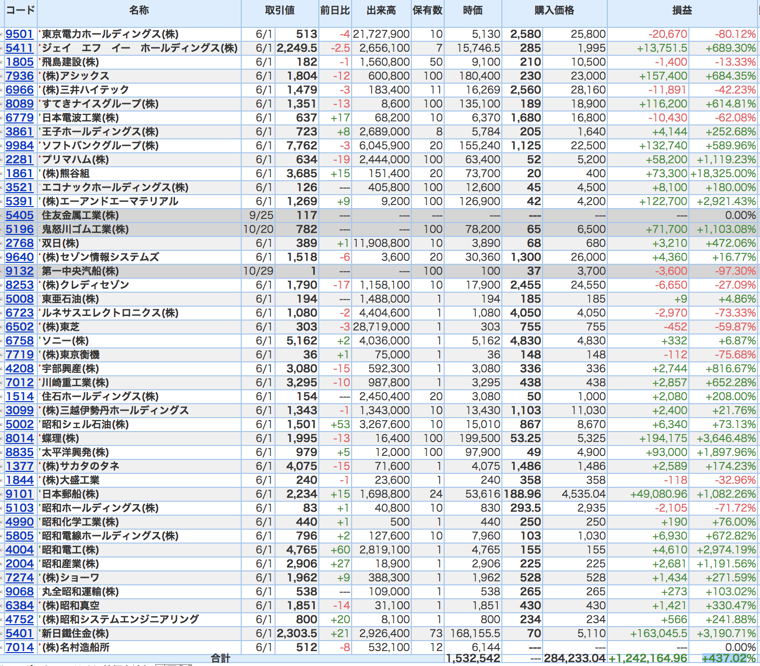 豊嶋康子ミニ投資【合計】___¥1,534,381.5(+437.64%)