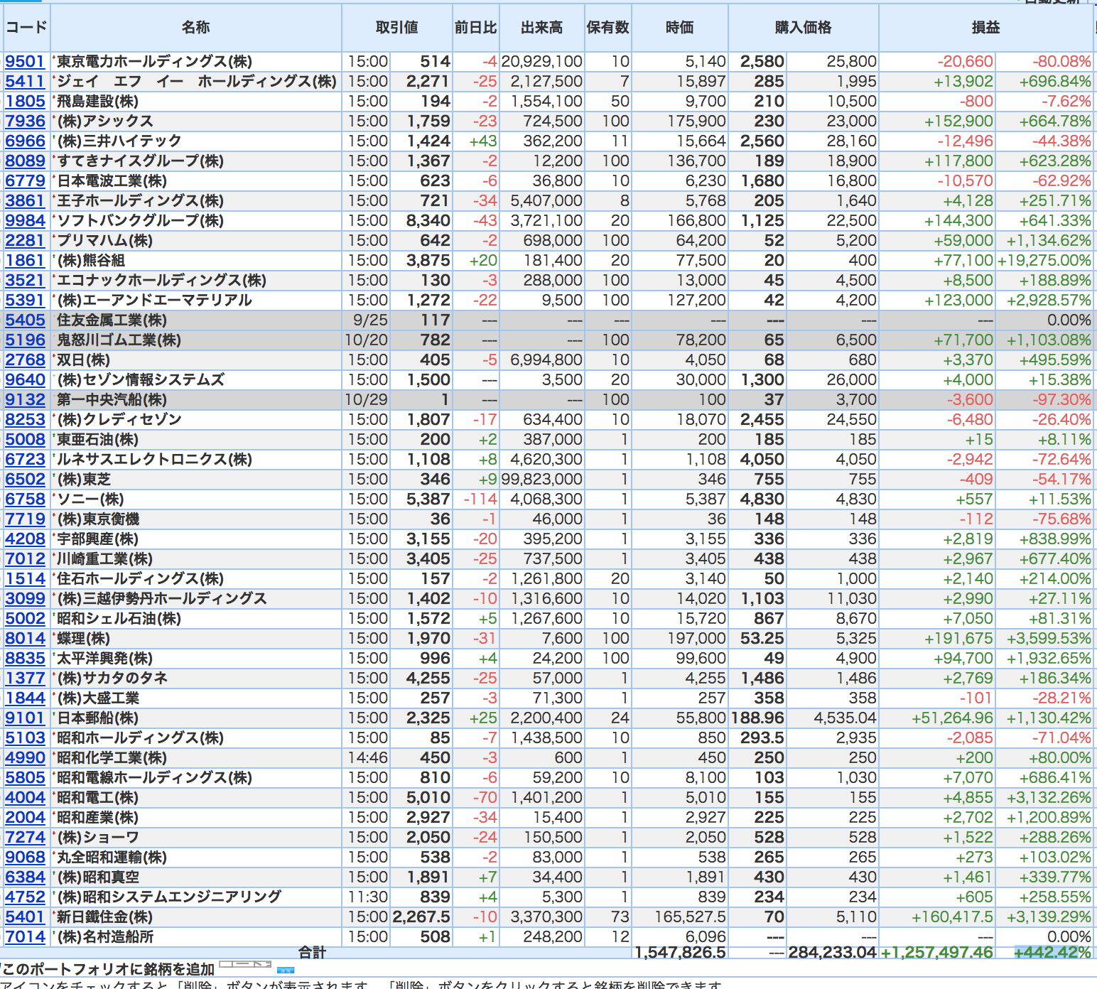 豊嶋康子ミニ投資【合計】___¥1,546,787.5(+442.04%)