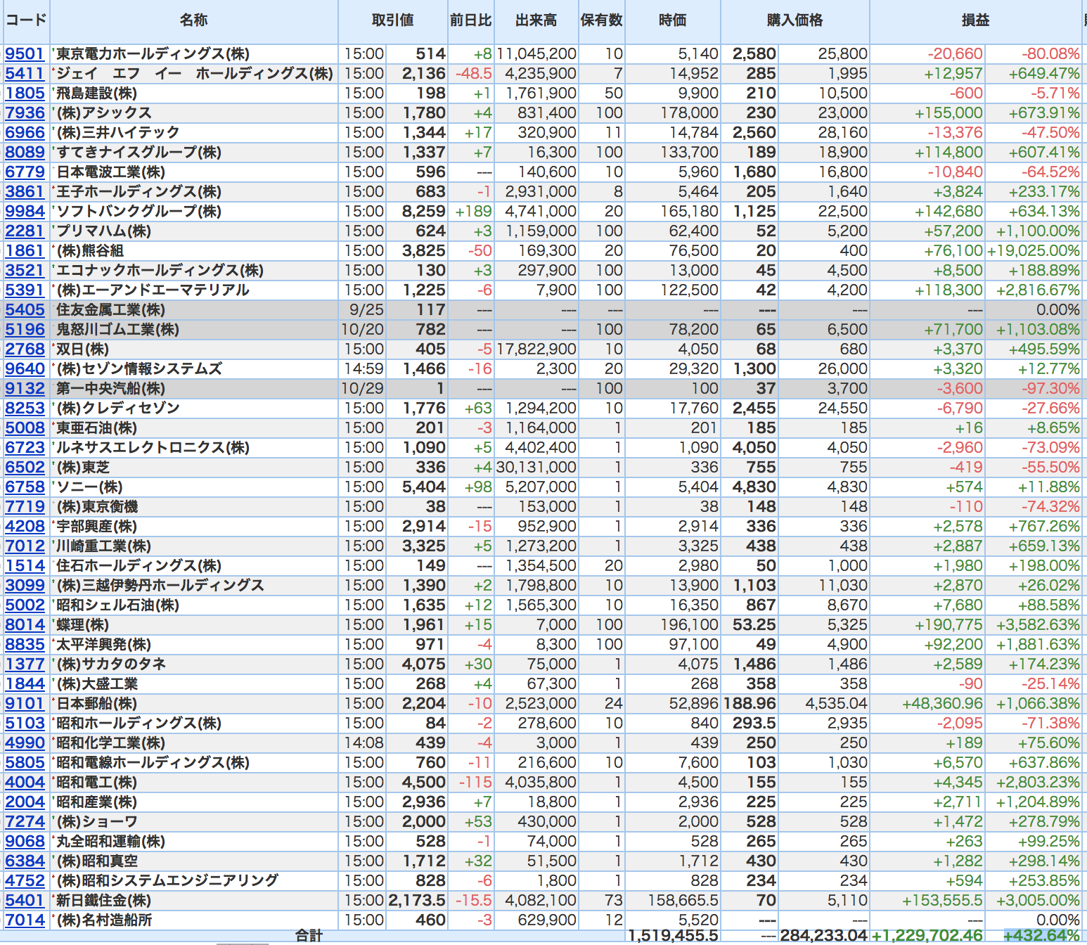 豊嶋康子ミニ投資【合計】___¥1,519,455.5(+432.64%)