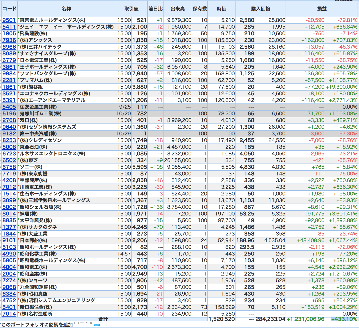 豊嶋康子ミニ投資【合計】___¥1,520,520(+433.10%)