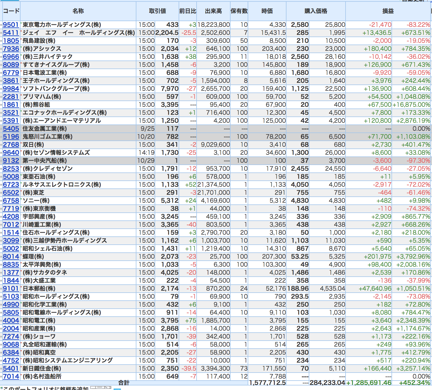 豊嶋康子ミニ投資【合計】___¥1,577,712.5(+452.34%)