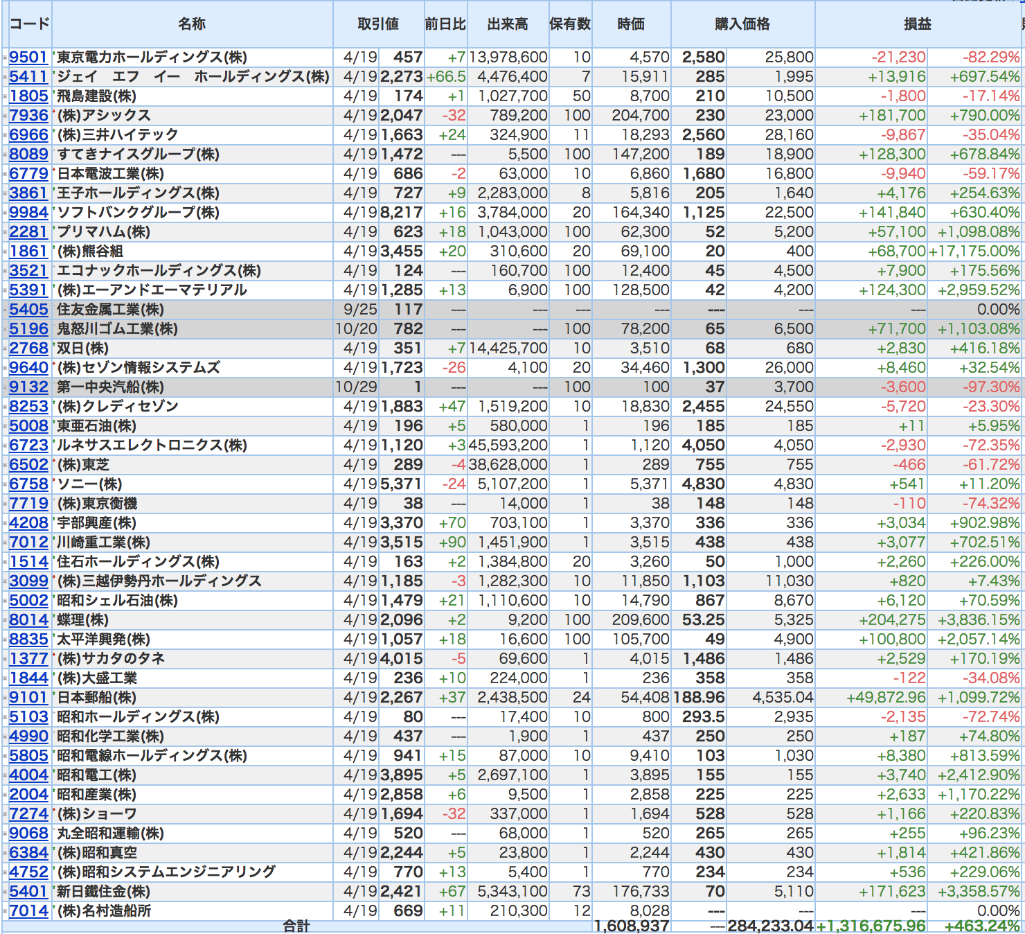豊嶋康子ミニ投資【合計】___¥1,608,937(+463.24%)
