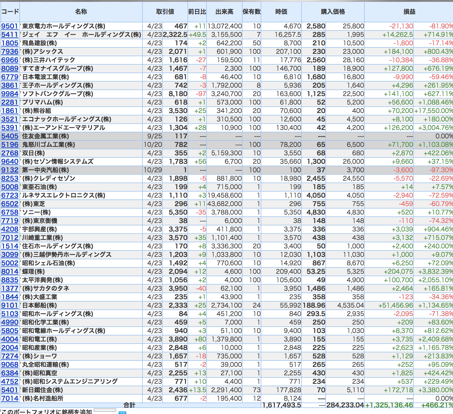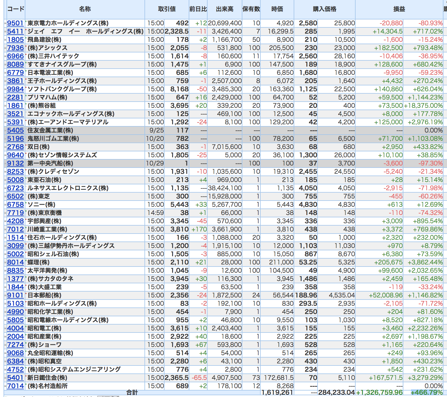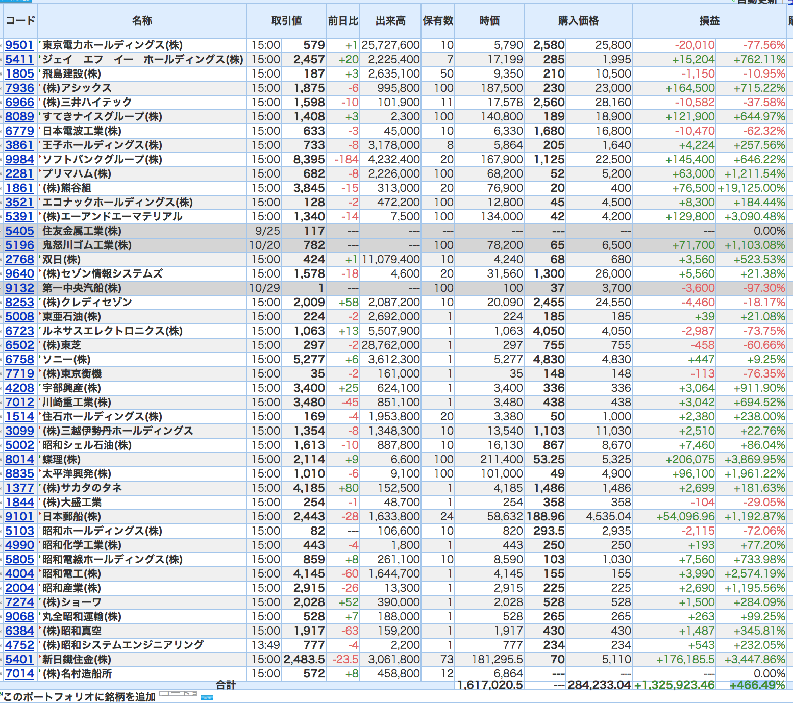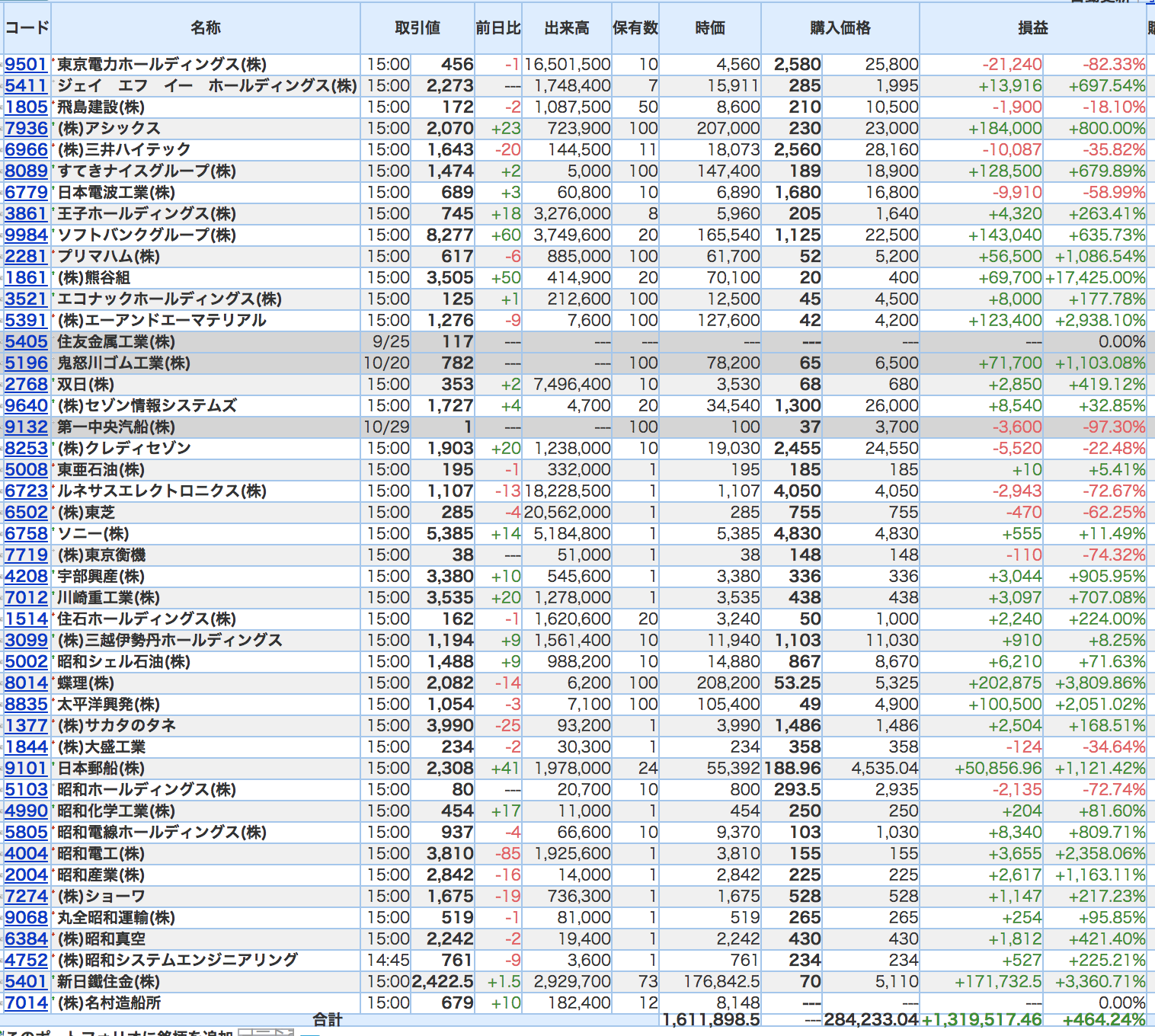 豊嶋康子ミニ投資【合計】___¥1,619,261(+466.79%)