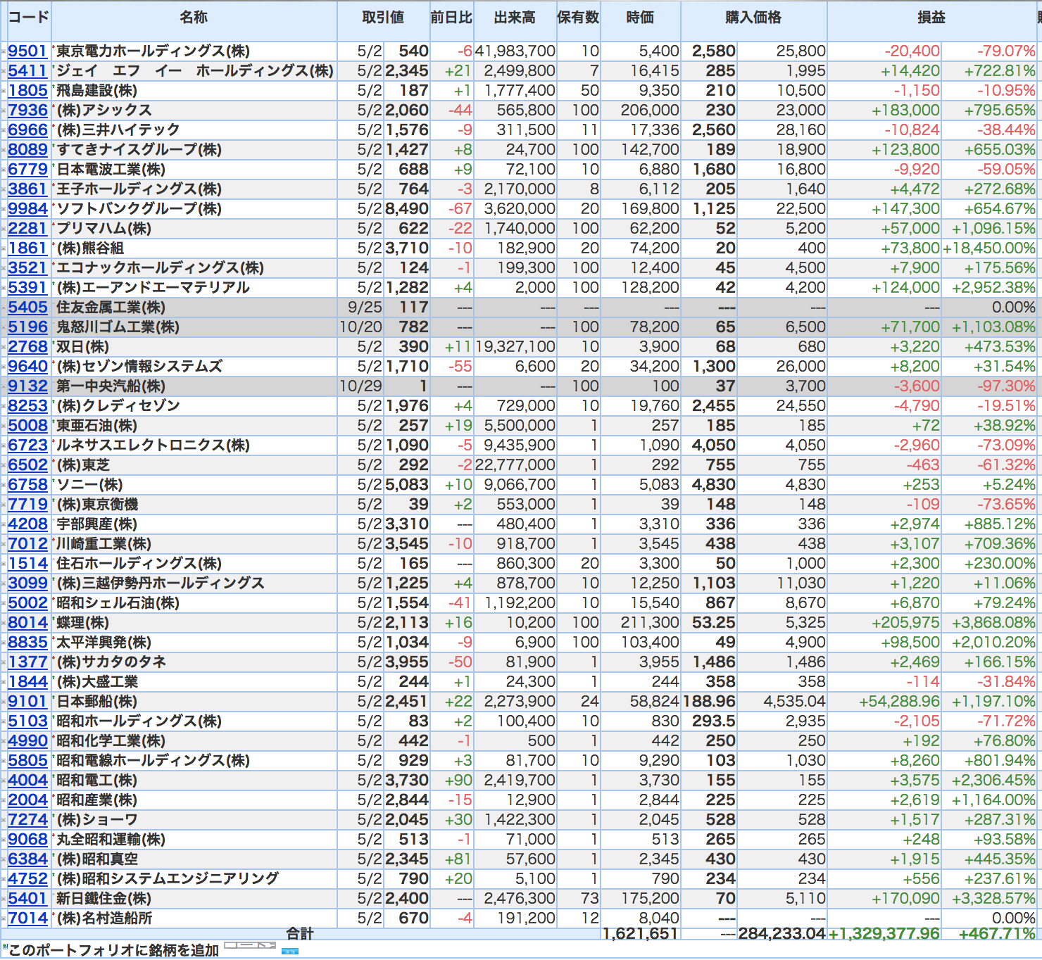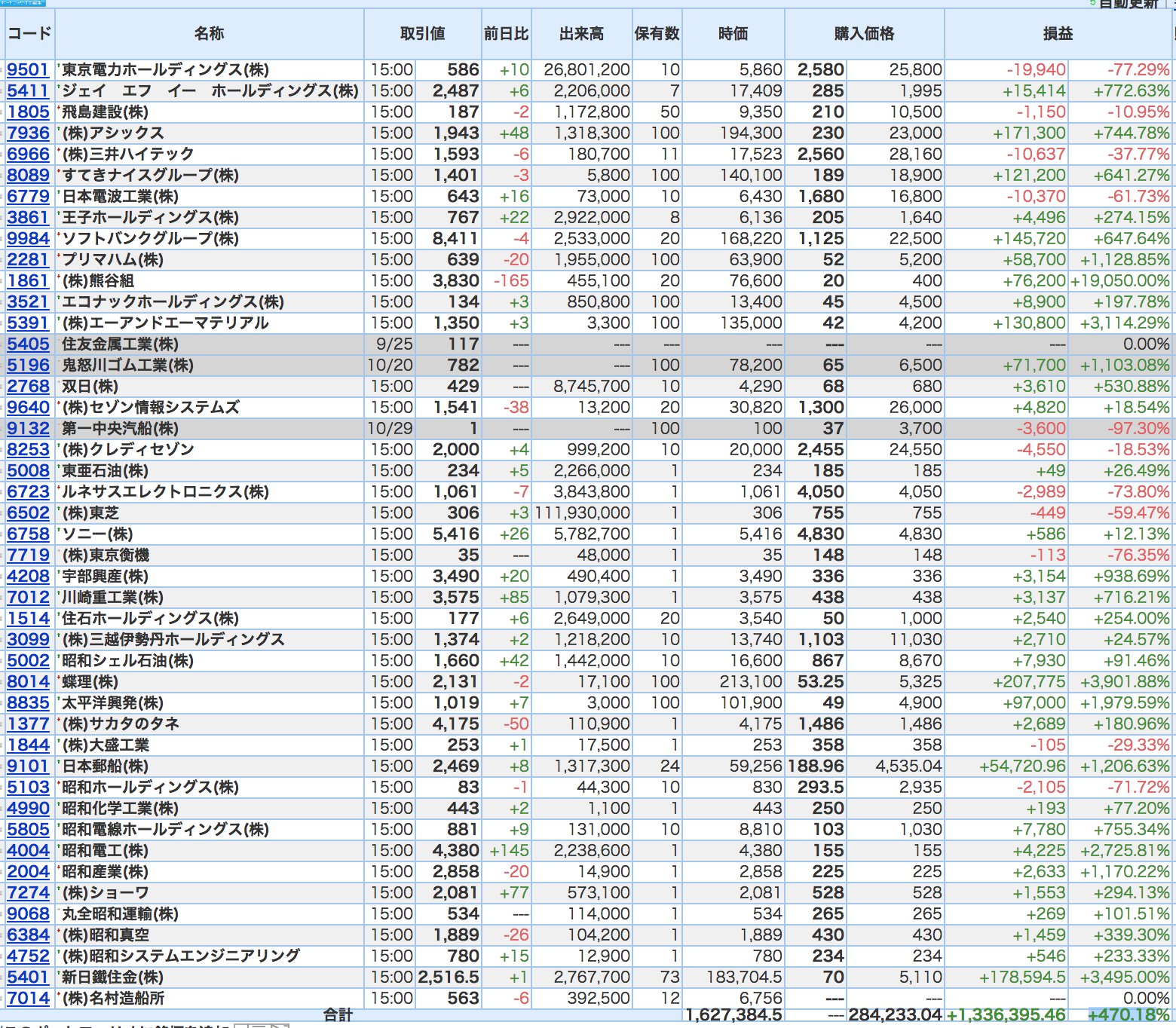 豊嶋康子ミニ投資【合計】___¥1,629,636(+470.55%)