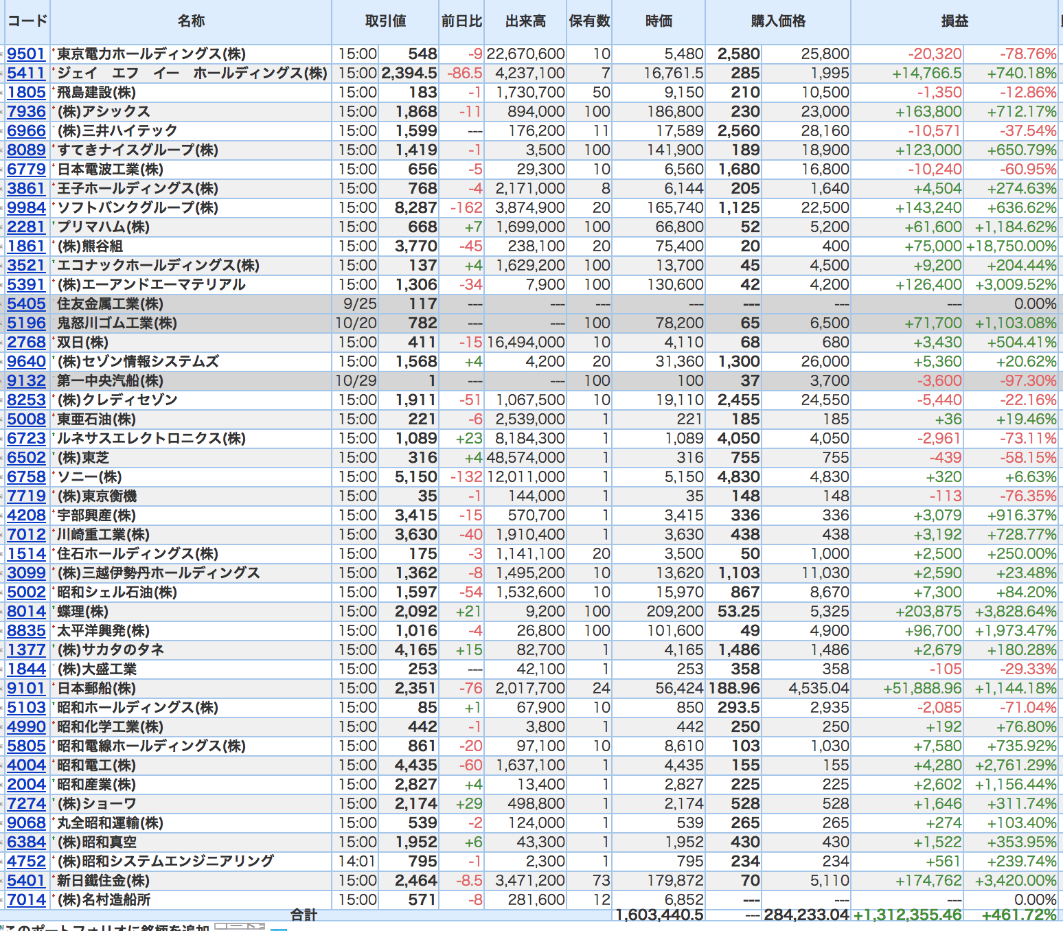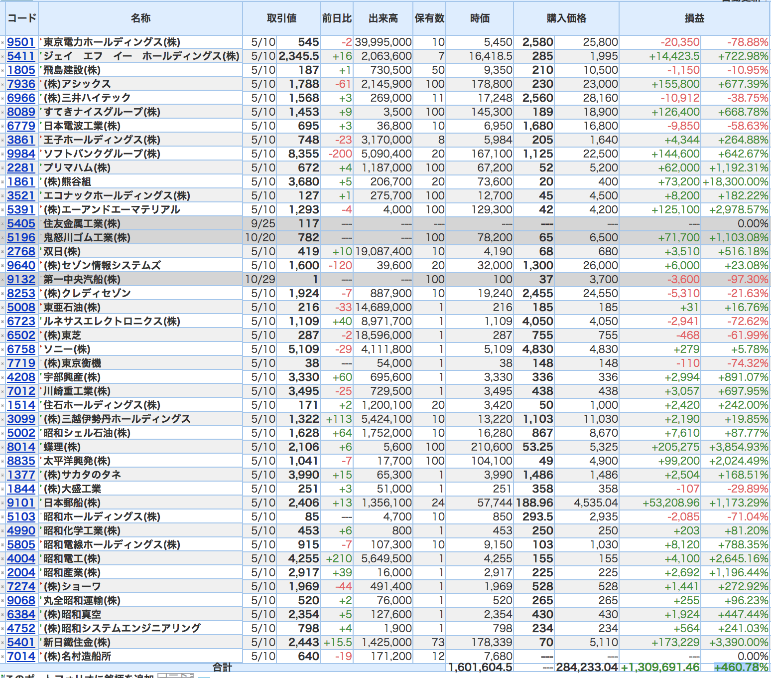 豊嶋康子ミニ投資【合計】___¥1,601,604.5(+460.78%)