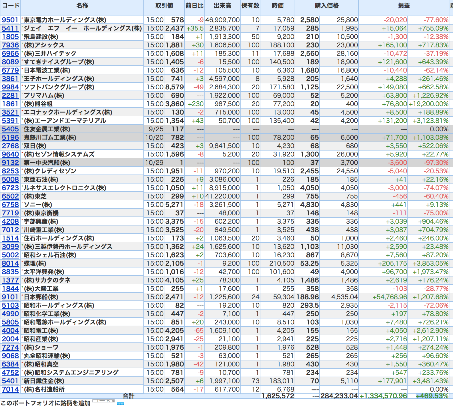 豊嶋康子ミニ投資【合計】___¥1,625,572(+469.53%)