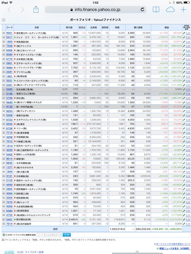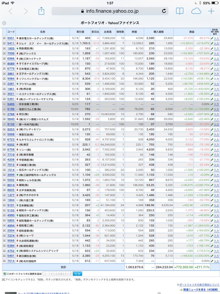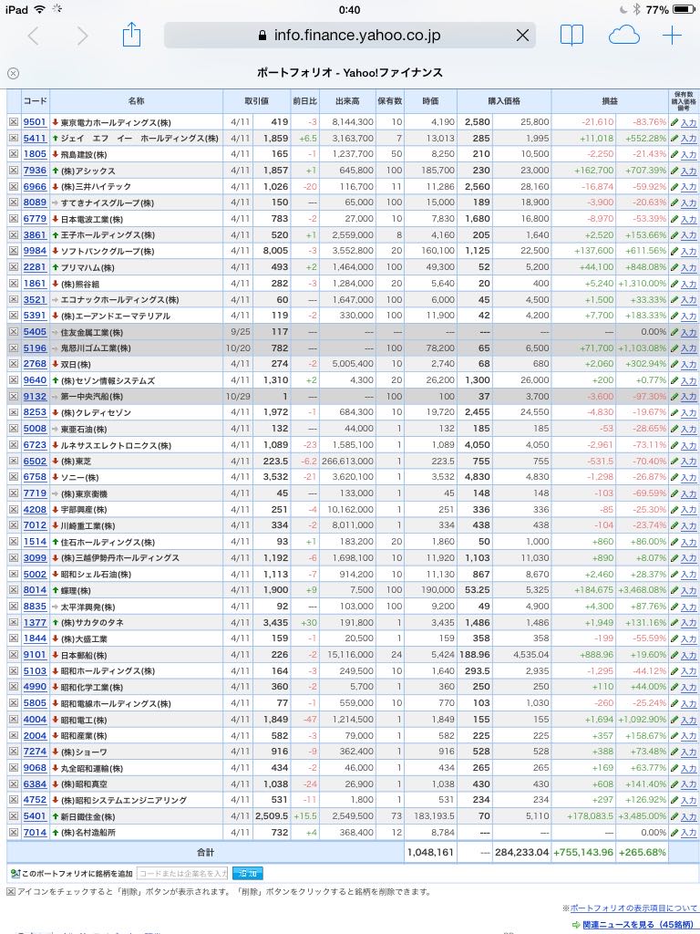 豊嶋康子ミニ投資【合計】___¥1,079,644(+276.84%)