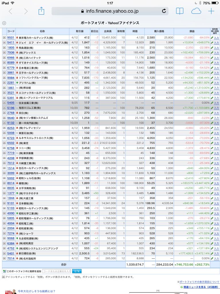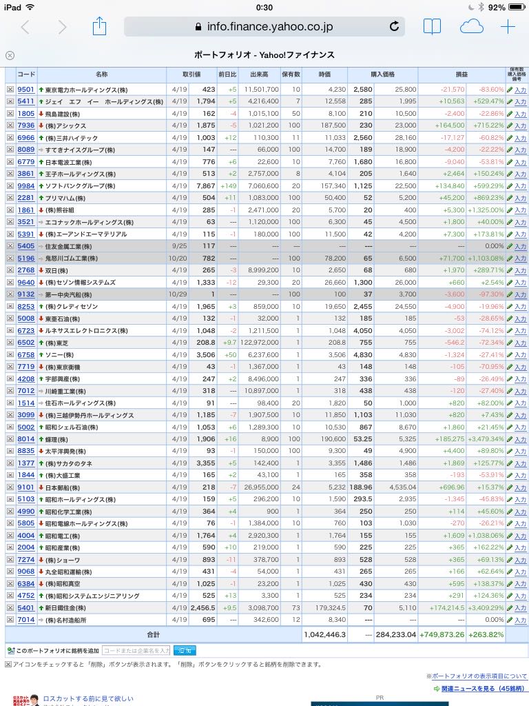 豊嶋康子ミニ投資【合計】___¥1,094,873(+282.64%)