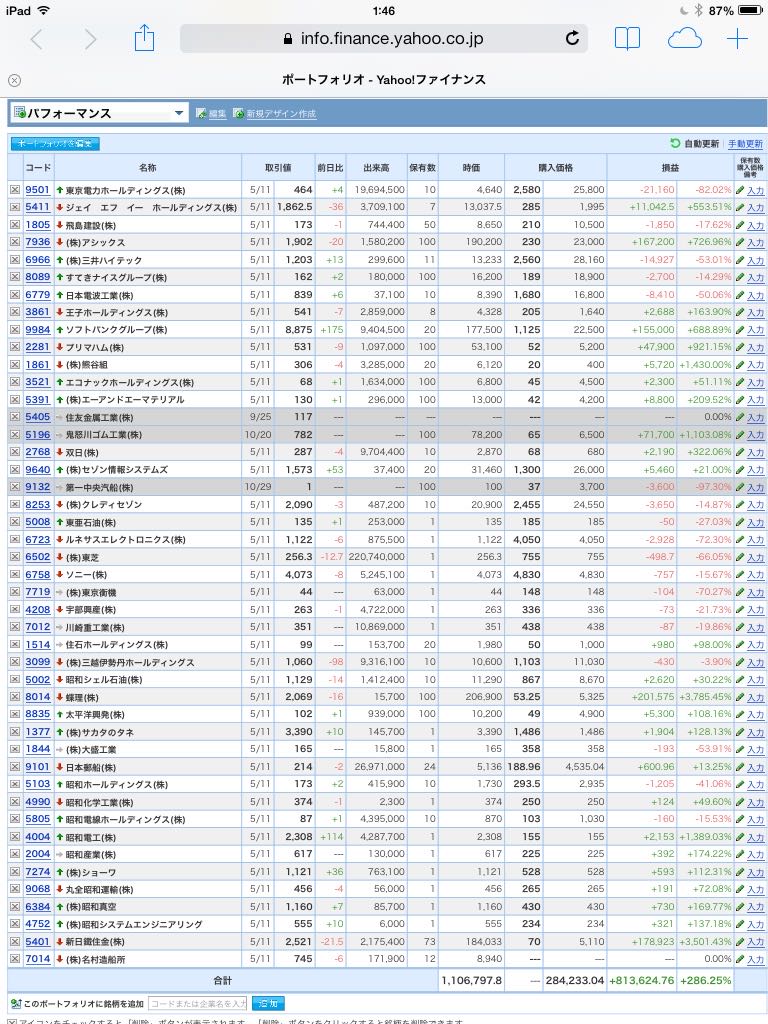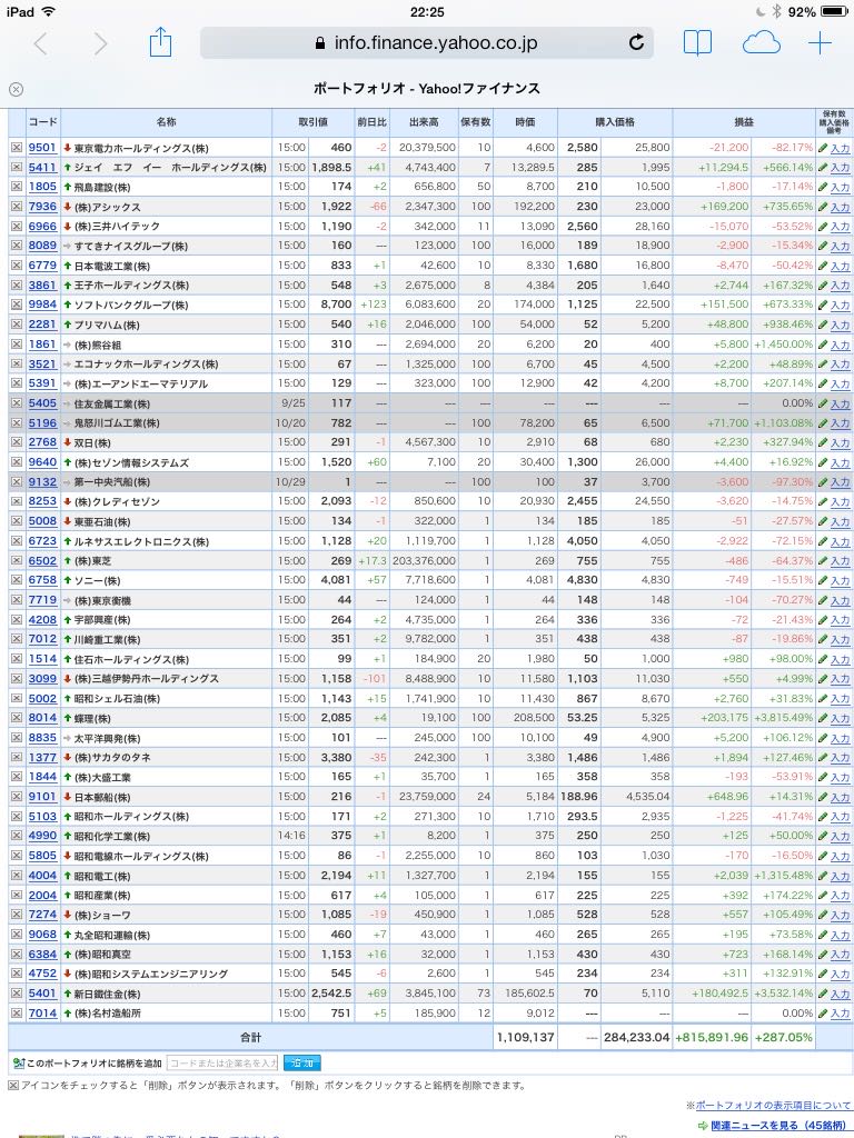 豊嶋康子ミニ投資【合計】___¥1,109,137(+287.05%)