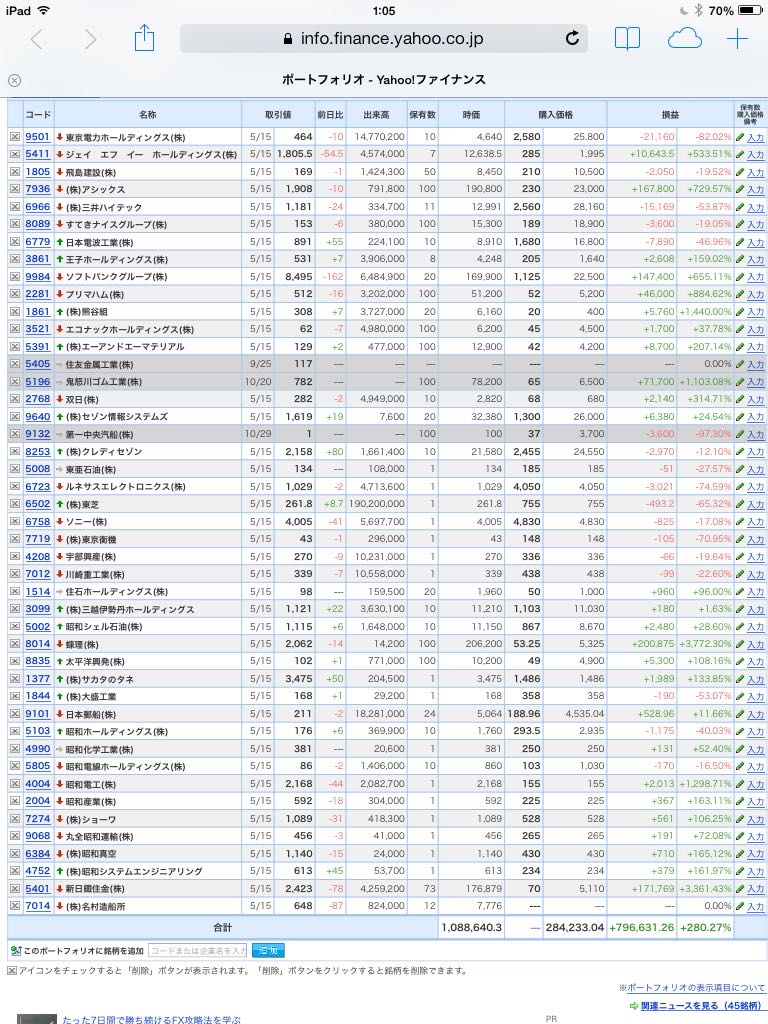 豊嶋康子ミニ投資【合計】___¥1,088,977(+280.05%)