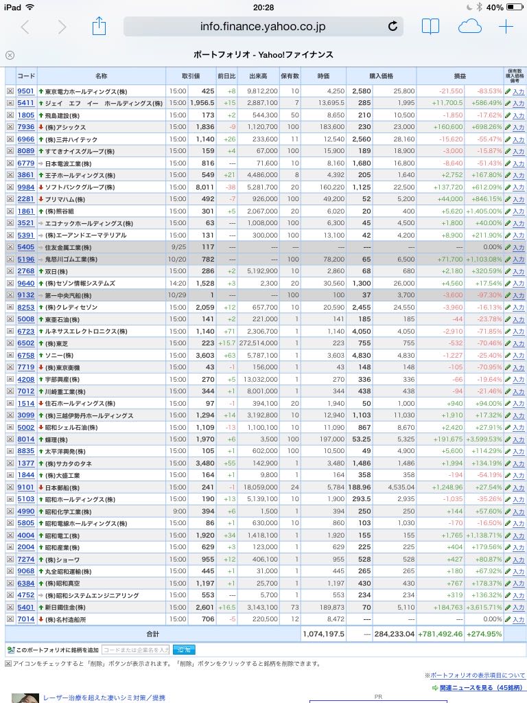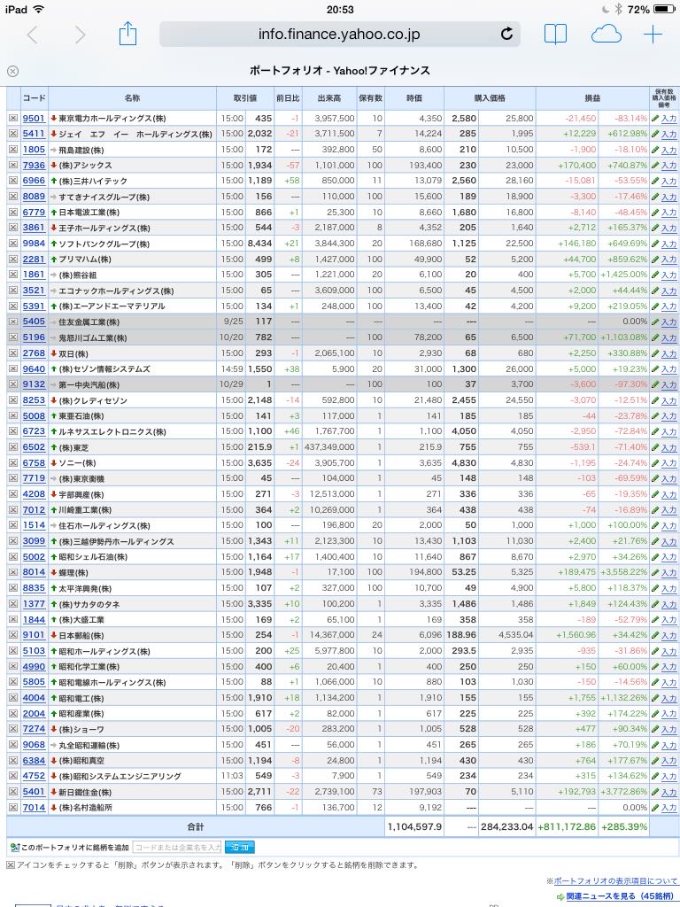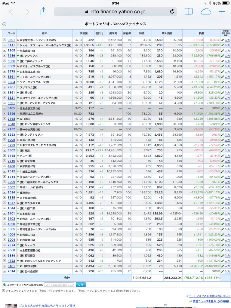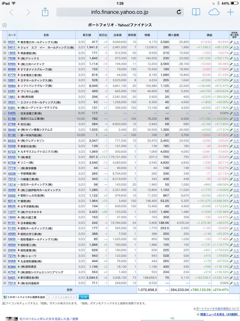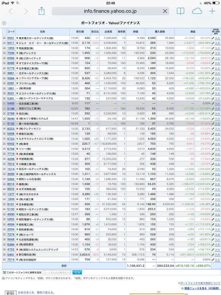 豊嶋康子ミニ投資【合計】___¥1,072,510(+274.33%)