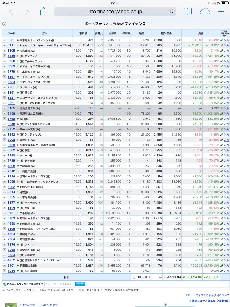 豊嶋康子ミニ投資【合計】___¥1,109,337.8(+287.05%)