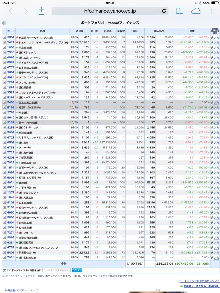 豊嶋康子ミニ投資【合計】___¥1,100,736.1(+284.09%)