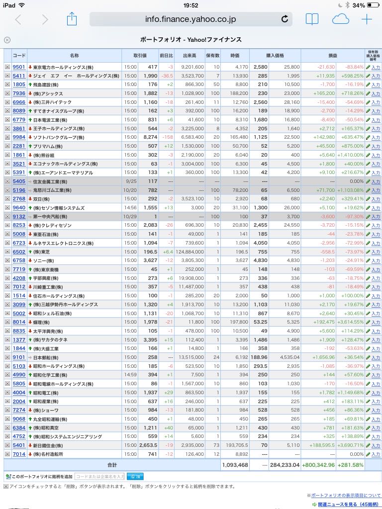 豊嶋康子ミニ投資【合計】___¥1,093,468(+281.58%)