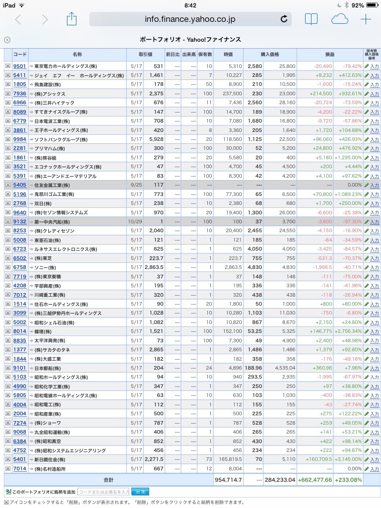 【合計】___¥954,714.7(+233.08%)