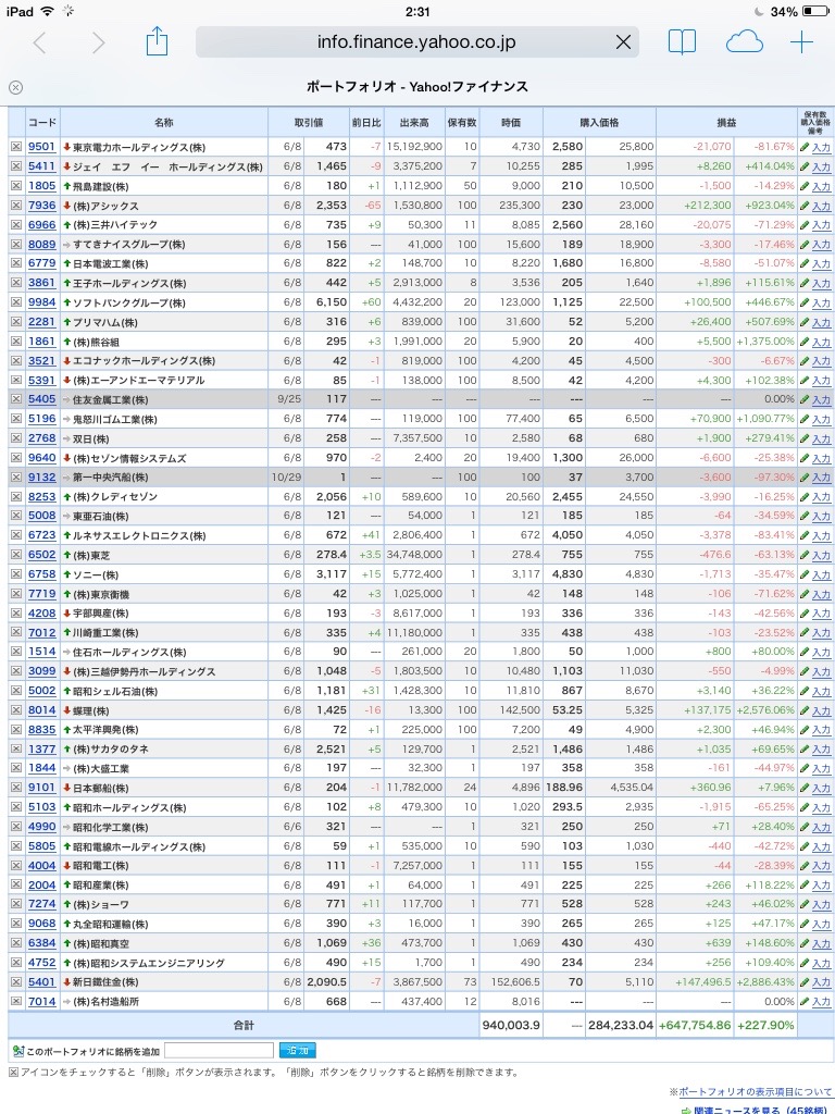 【合計】___¥940,003.9(+227.90%)