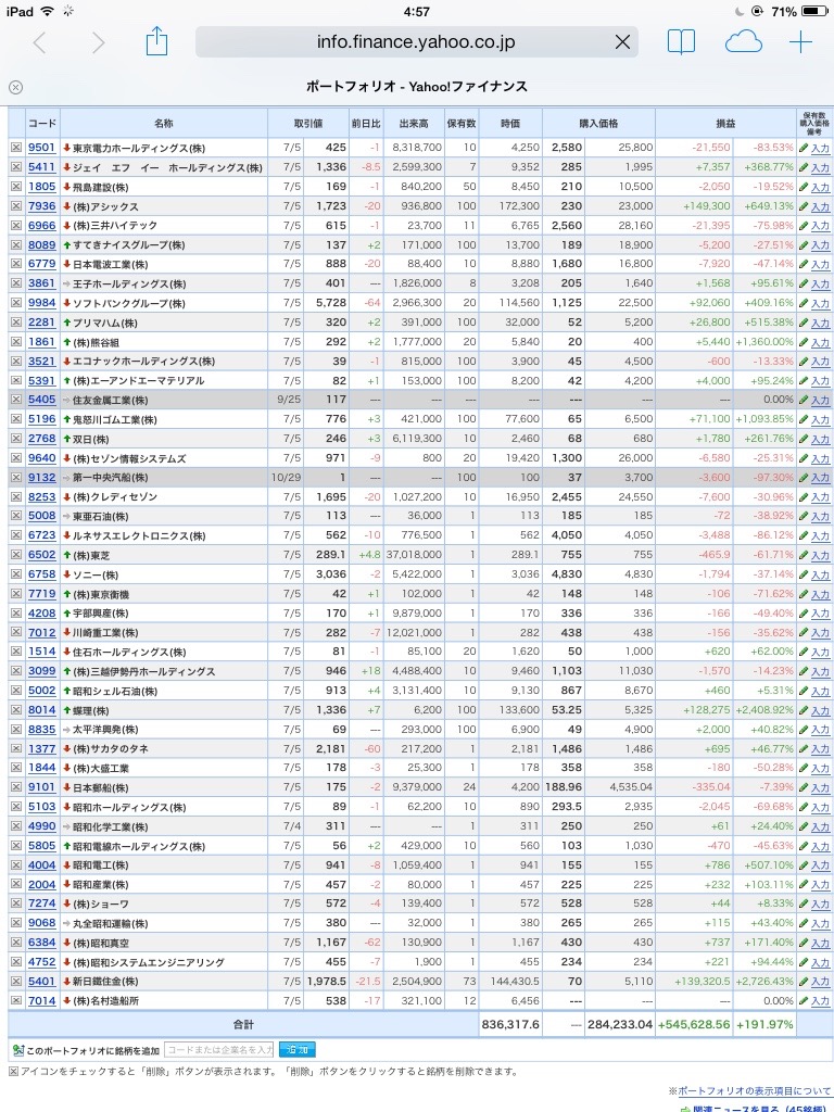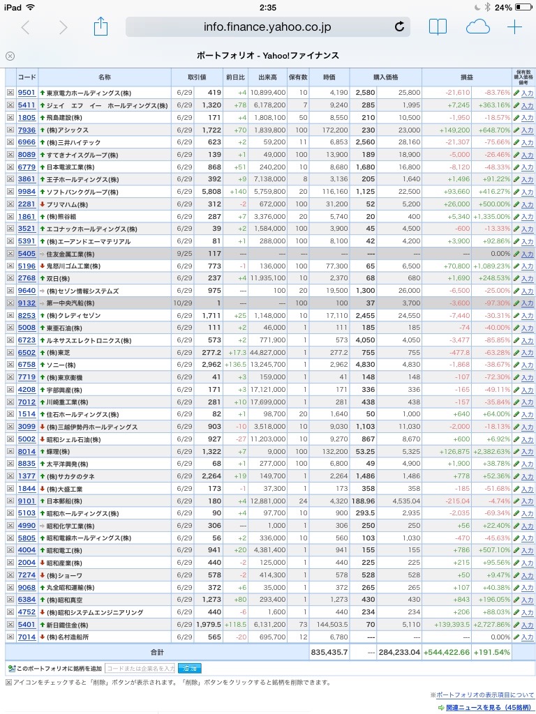 【合計】___¥835,435.7(+191.54%)
