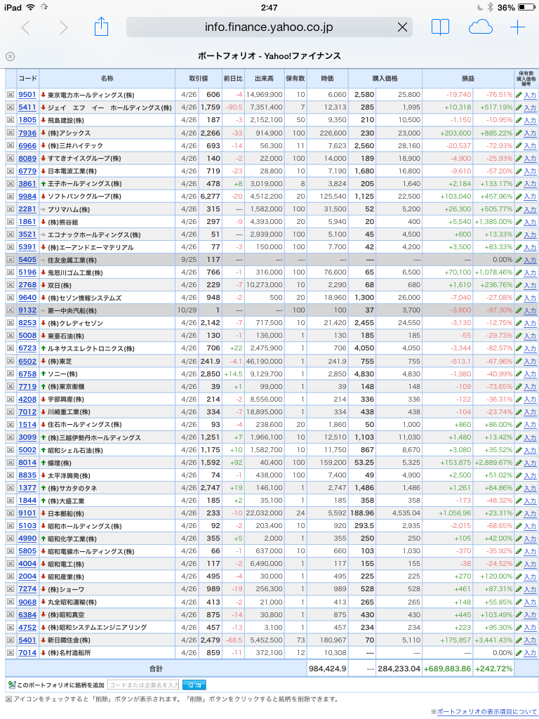 豊嶋康子ミニ投資【合計】___¥984424.9(+242.72%%)