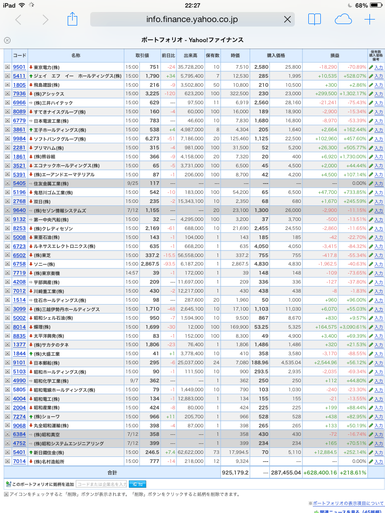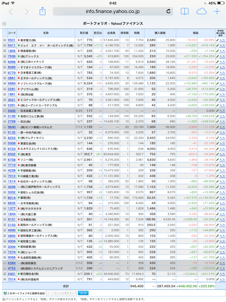 豊嶋康子ミニ投資【合計】___¥945,400(+225.58%)