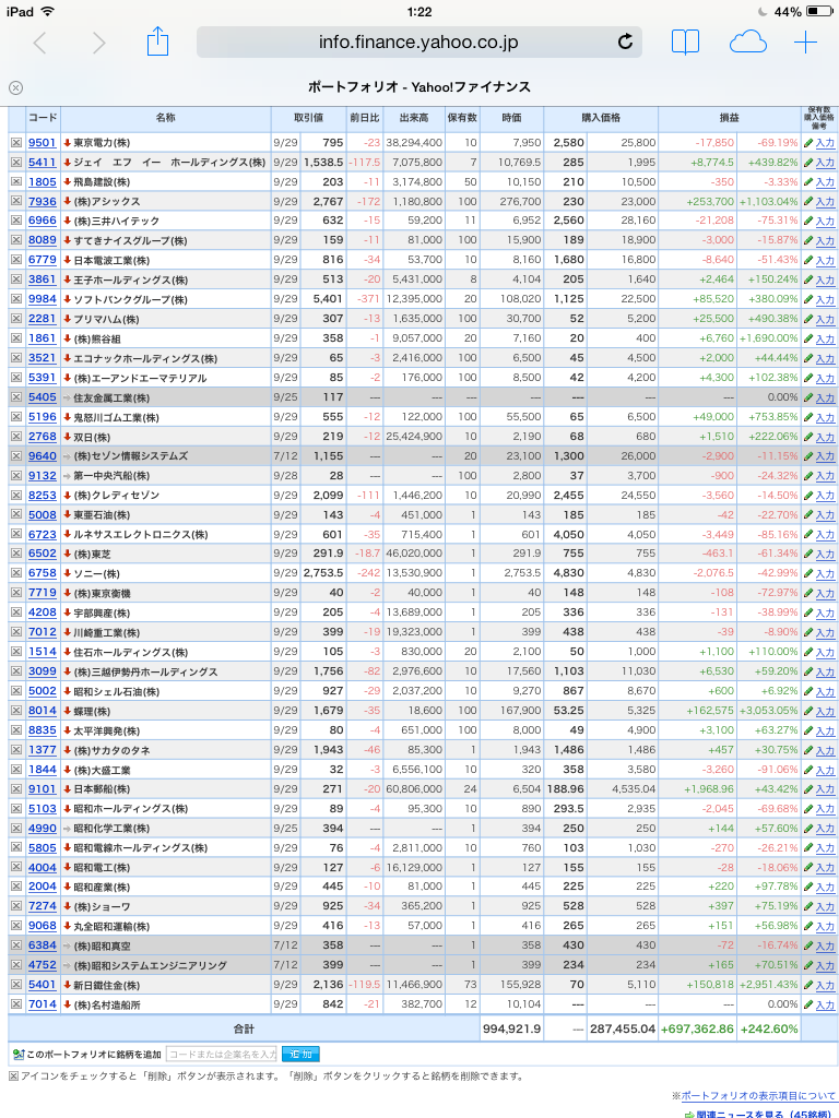 豊嶋康子ミニ投資【合計】___¥994,921.9(+242.60%)