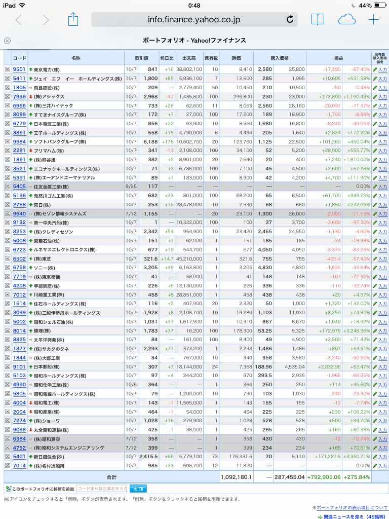 豊嶋康子ミニ投資【合計】___¥1,092,180.1(+275.84%)