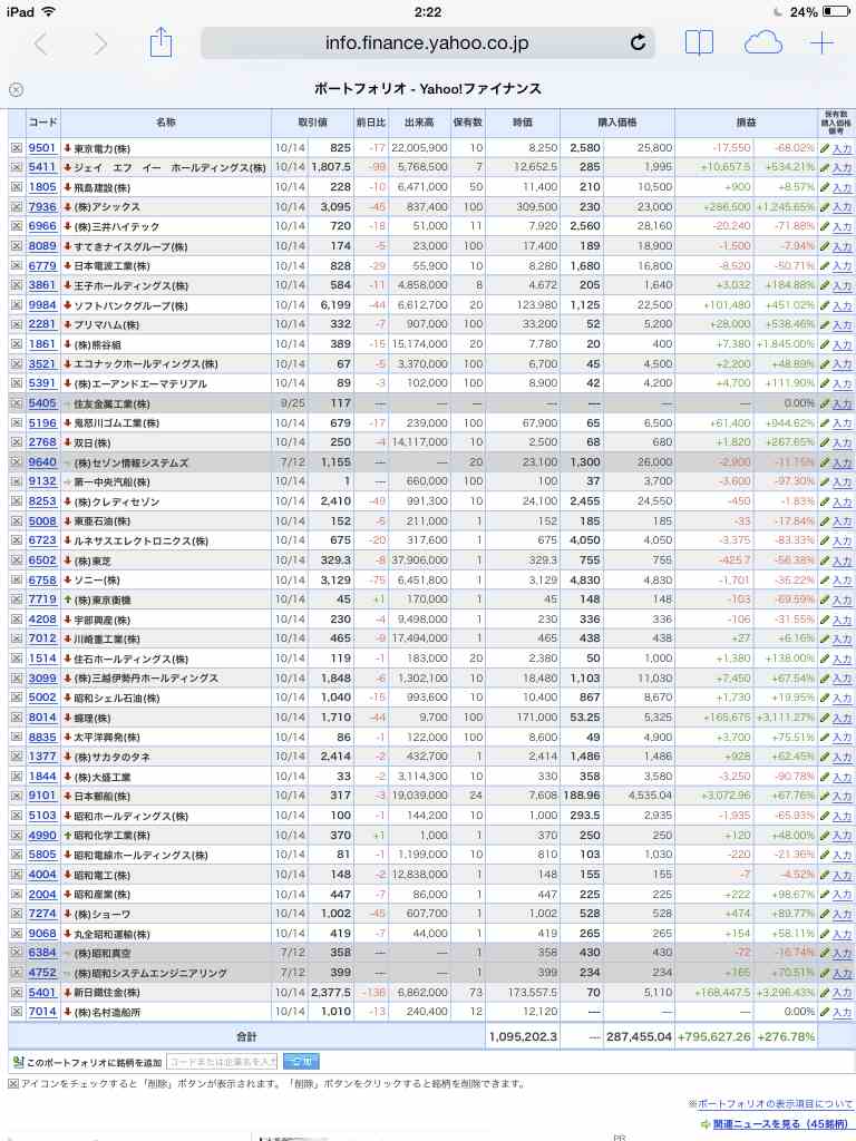 豊嶋康子ミニ投資【合計】___¥ 1,097,244.5(+277.29%)