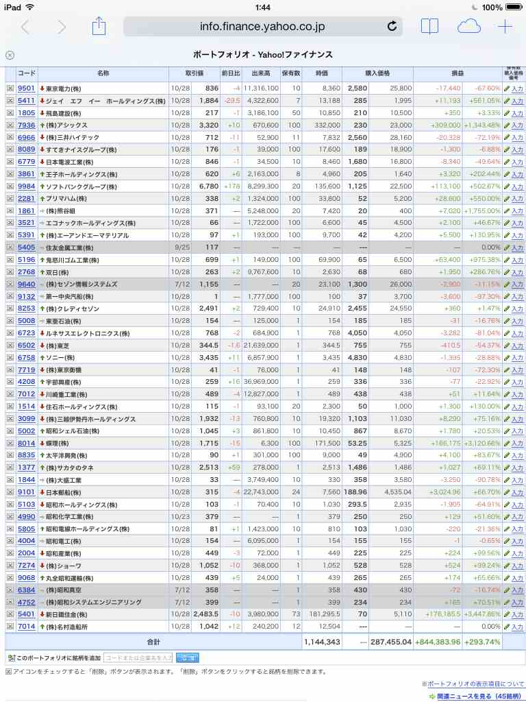 豊嶋康子ミニ投資【合計】___¥1,144,343(+293.74%)