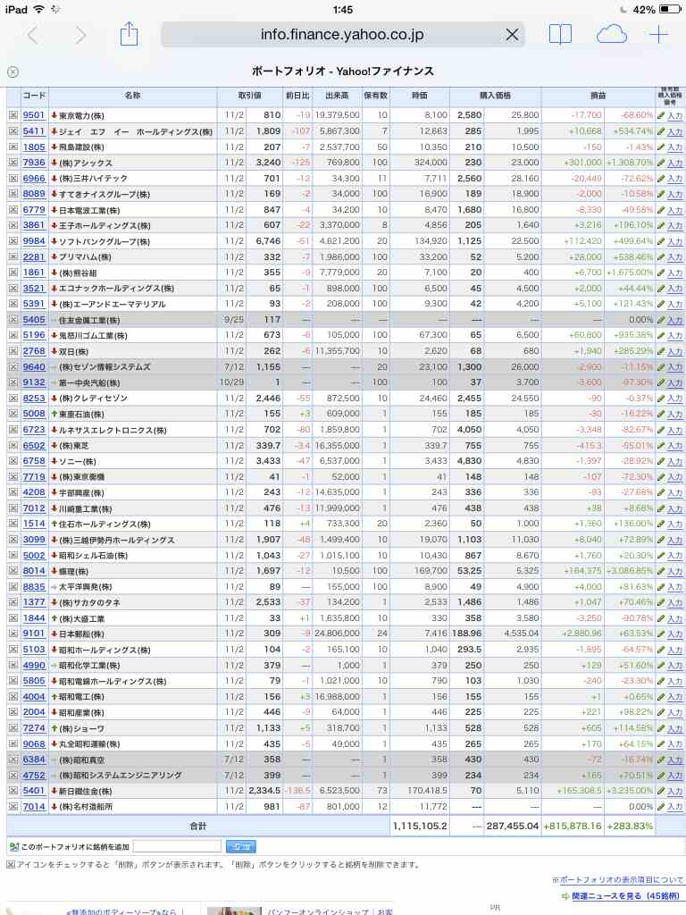 豊嶋康子ミニ投資【合計】___¥1,115,105.2(+283.83%)