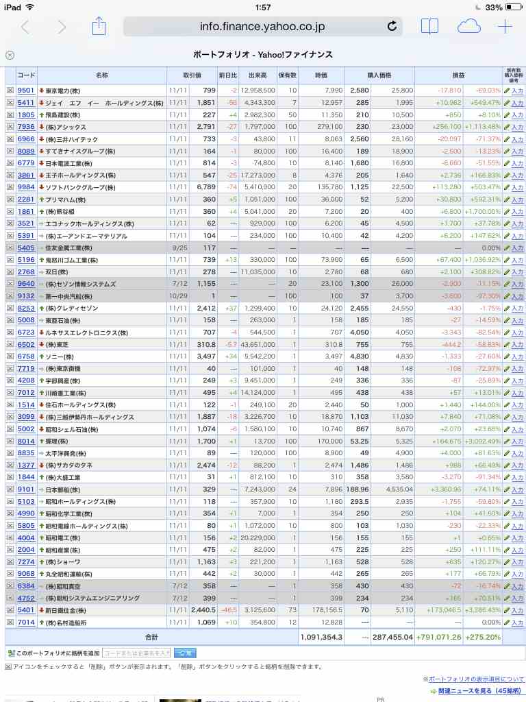 豊嶋康子ミニ投資【合計】___¥1,091,354.3(+275.20%)