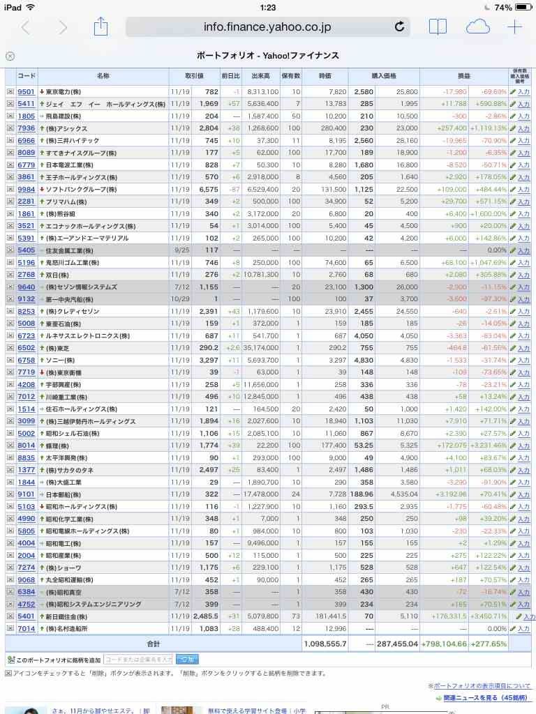 豊嶋康子ミニ投資【合計】___¥1,098,555.7 (+277.65%)