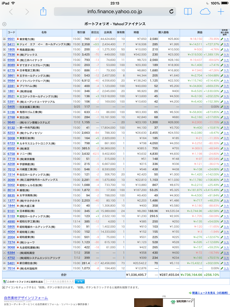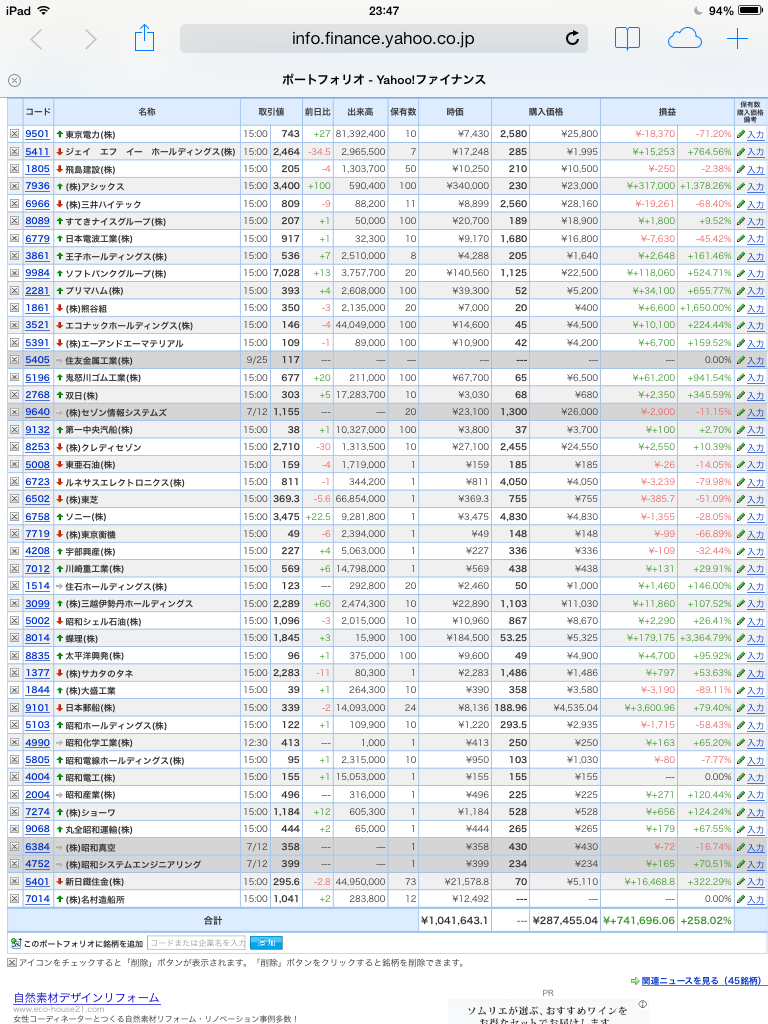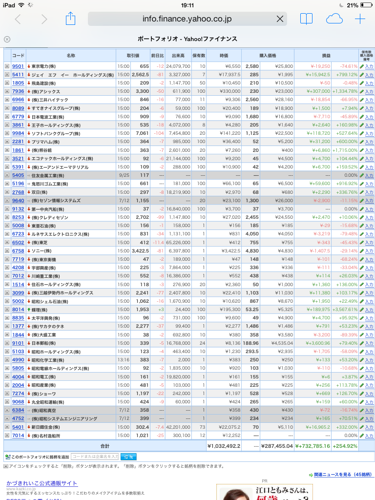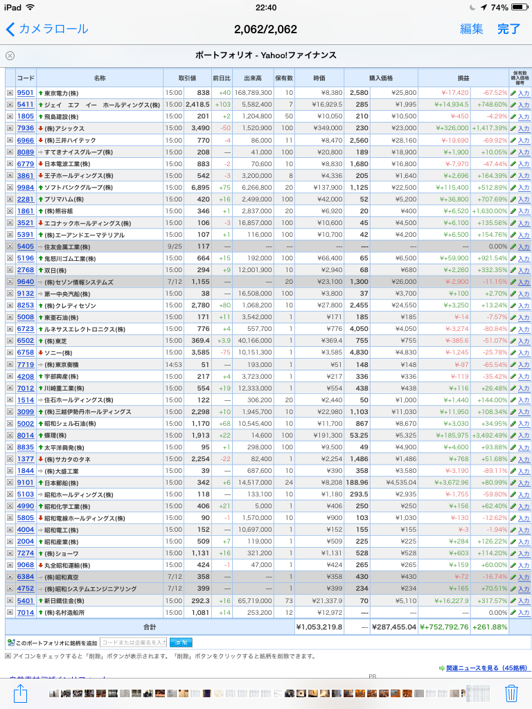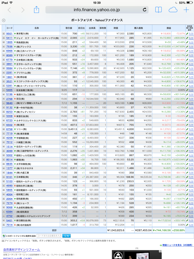 豊嶋康子ミニ投資【合計】___¥1,054,674(+262.36%)