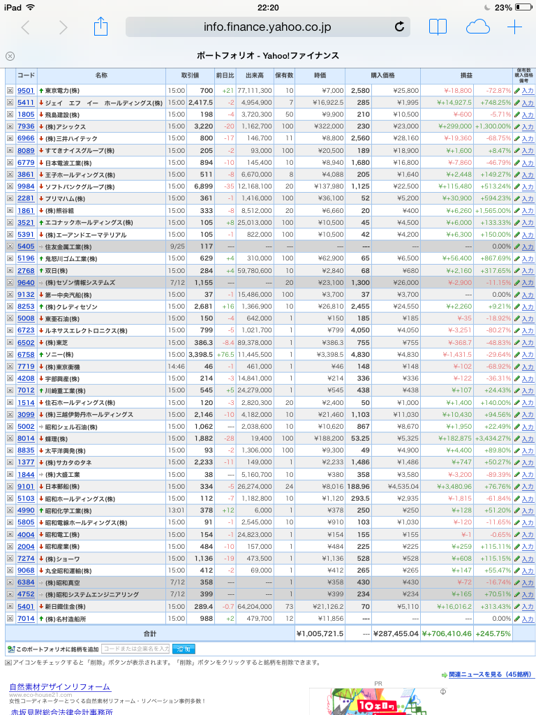 豊嶋康子ミニ投資【合計】___¥1,005,721.5(+245.75%)