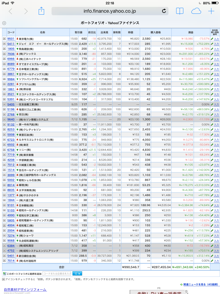 豊嶋康子ミニ投資【合計】___¥990,546.7(+240.50%)