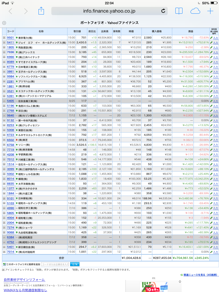 豊嶋康子ミニ投資【合計】___¥1,011,394.5(+247.73%)