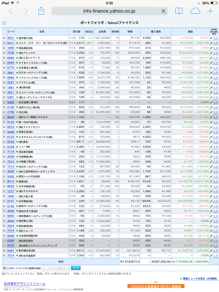 豊嶋康子ミニ投資【合計】___¥1,018,877.3(+250.09%)