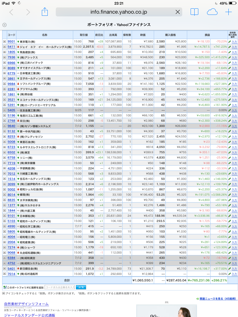 豊嶋康子ミニ投資【合計】___¥1,063,804(+265.56%)