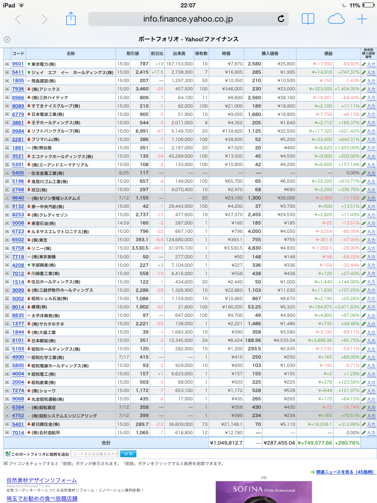 豊嶋康子ミニ投資【合計】___¥1,049,812.7(+260.76%)