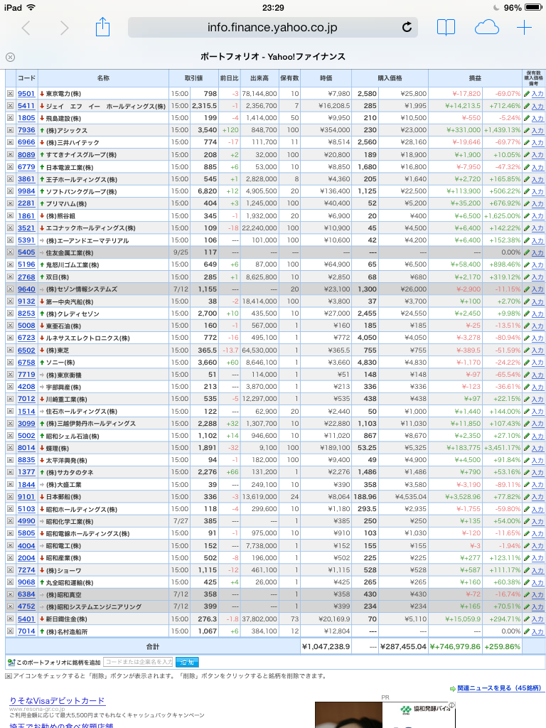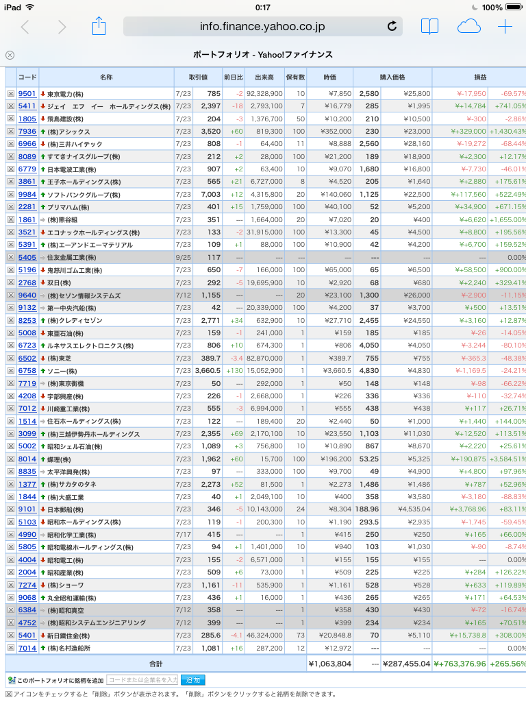 豊嶋康子ミニ投資【合計】___¥1,080,378(+271.66%)
